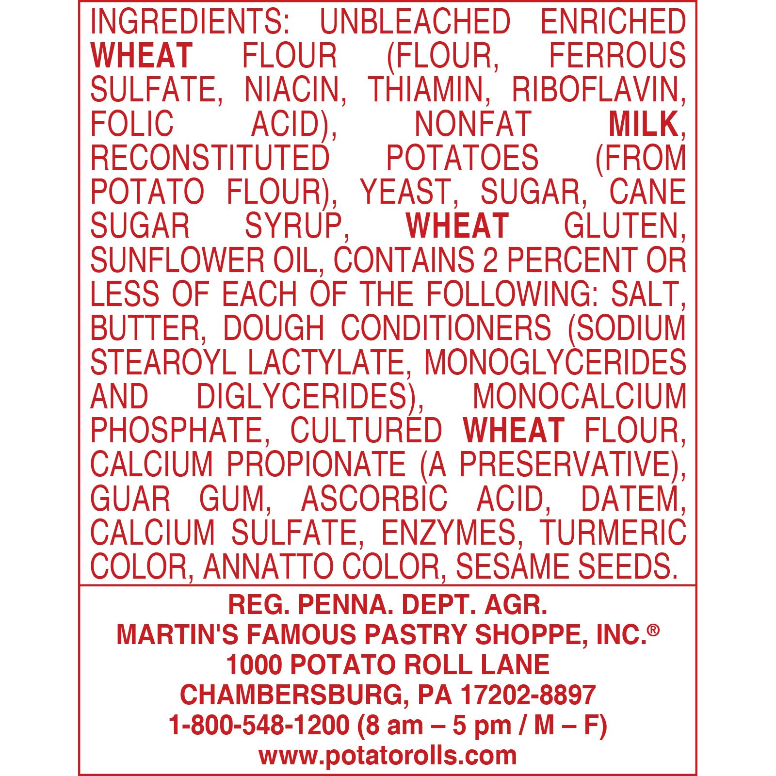 Ingredients Unbleached Enriched Wheat Flour (Flour, Ferrous Sulfate, Niacin, Thiamin, Riboflavin, Folic Acid), Nonfat Milk, Reconstituted Potatoes (From Potato Flour), Yeast, Sugar, Cane Sugar Syrup, Wheat Gluten, Sunflower Oil, Contains 2 Percent Or Less Of Each Of The Following: Salt, Butter, Dough Conditioners (Sodium Stearoyl Lactylate, Monoglycerides And Diglycerides), Monocalcium Phosphate, Cultured Wheat Flour, Calcium Propionate (A Preservative), Guar Gum, Ascorbic Acid, Datem, Calcium Sulfate, Enzymes, Turmeric Color, Annatto Color, Sesame Seeds.