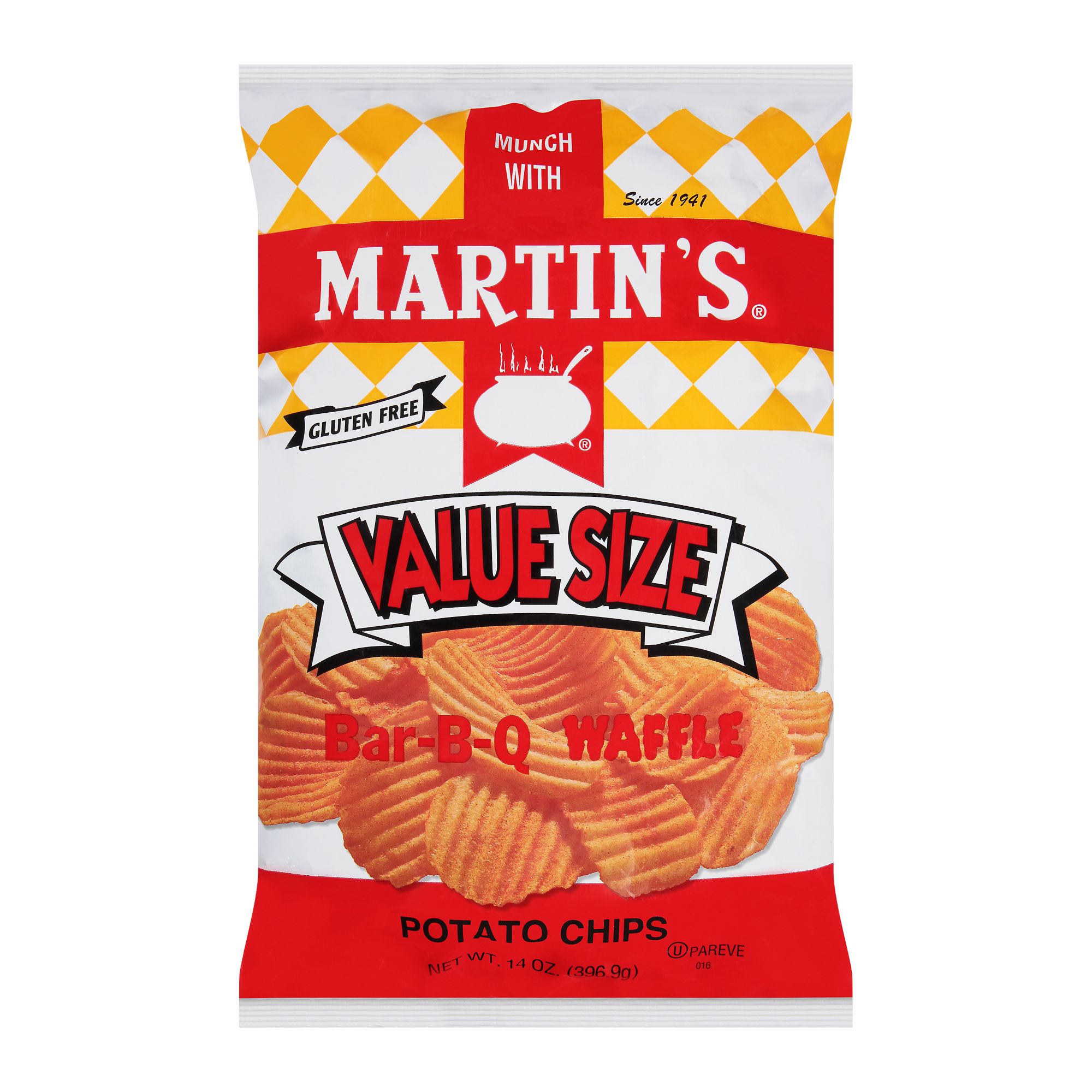 Martin's Value-Size Chips are the perfect lunchbox addition or big game snack. With just the right amount of seasoning and crunch, you can't eat just one. Available in 3 different flavors: BBQ Waffle Chips, Dippin Chips and Sour Cream & Onion Waffle Chips. Check your local BJ's Club for available 15 oz. selections. Kosher dairy.
