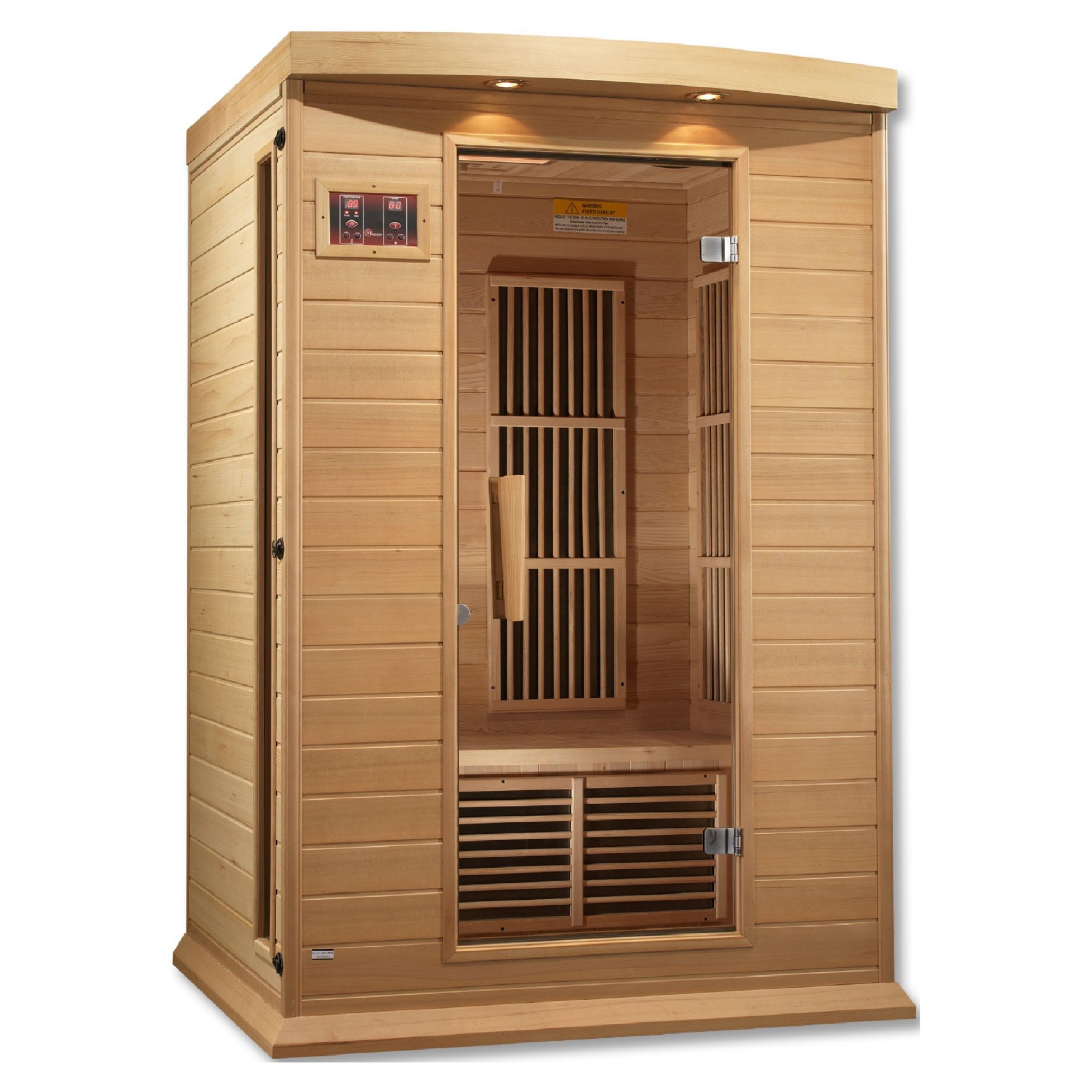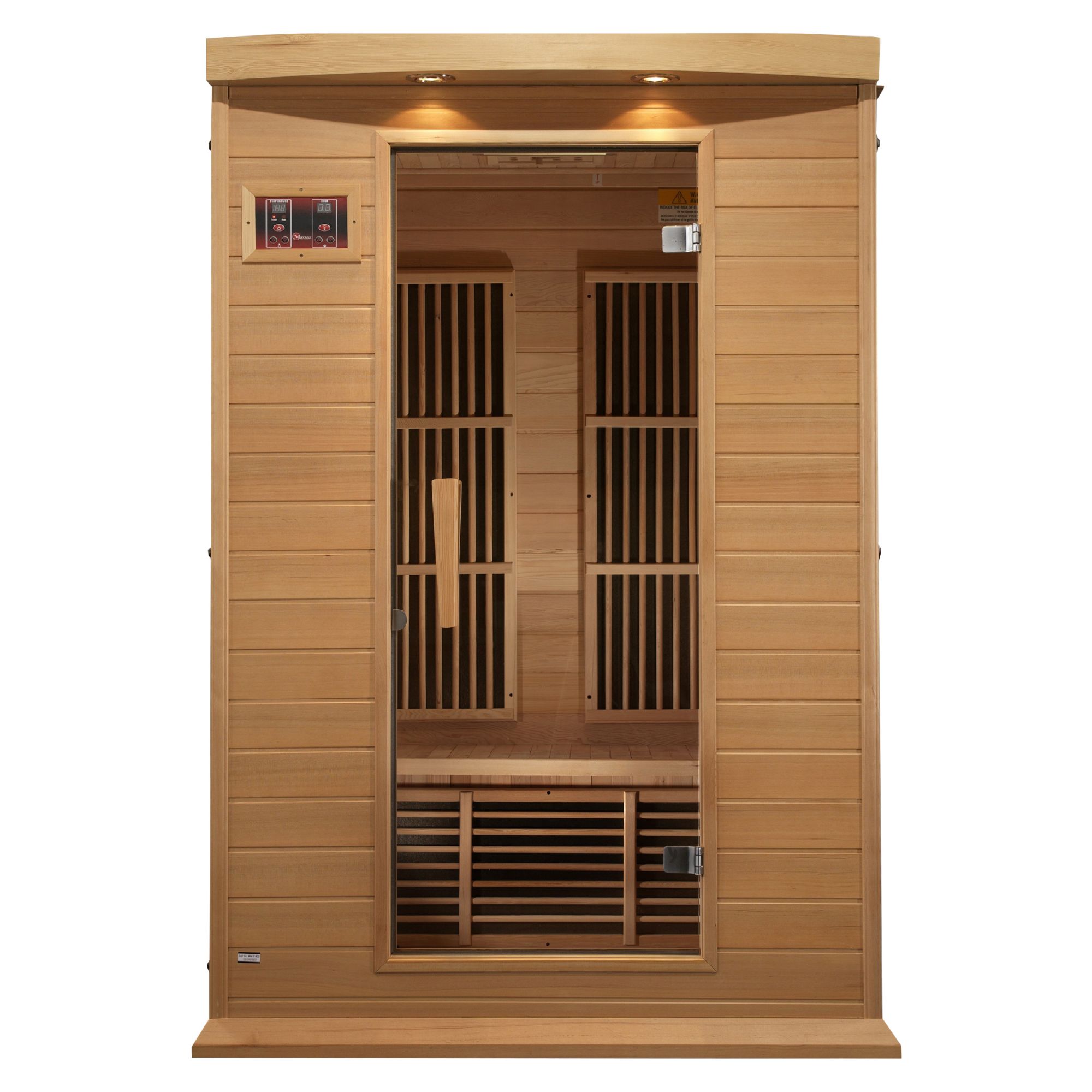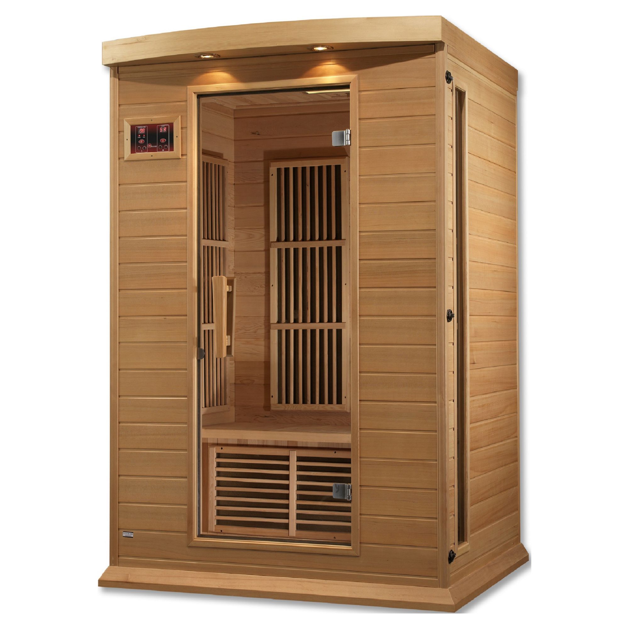 The Maxxus 2-person Red Light Infrared Therapy Sauna features oversized carbon tech heaters, which allow for beneficial and safe infrared waves to penetrate your skin to help your body remove toxins, increase blood circulation, ease pain from sore muscles or aching joints, burn calories, and improve skin tone. Included is a Foot Reflexology Heater. Most of the body’s pressure points are in your feet. This important heater will provide maximum therapy and pain relief. Unlike the traditional rock and water saunas, which heat at or over 200°, and do not penetrate your skin. Our saunas operate at a much lower and safer 130°. In fact, the sauna is most effective at 120°. This allows you to enjoy the sauna longer and increase sauna enjoyment as well as maximize all the health benefits. Included features of this sauna include Chromotherapy, designed to enhance your mood and wellness. Enjoy the latest Advanced Red Light Therapy System. Red light therapy is known to help promote collagen growth, which improves skin tone as well as appearance. This light will also help with cell and muscle recovery. Enjoy your favorite music with an FM stereo with Bluetooth music system, featuring 2 dynamic speakers and a preamp. The wide glass door creates an open feel. This 2-person sauna is designed for ease of use, and assembly is a snap. Imagine life without having to join costly and crowded health clubs and spas. Now enjoy the same benefits in the privacy of your own home. Any time of day. Enjoy the lifestyle and wellness you deserve today with this Maxxus Sauna.