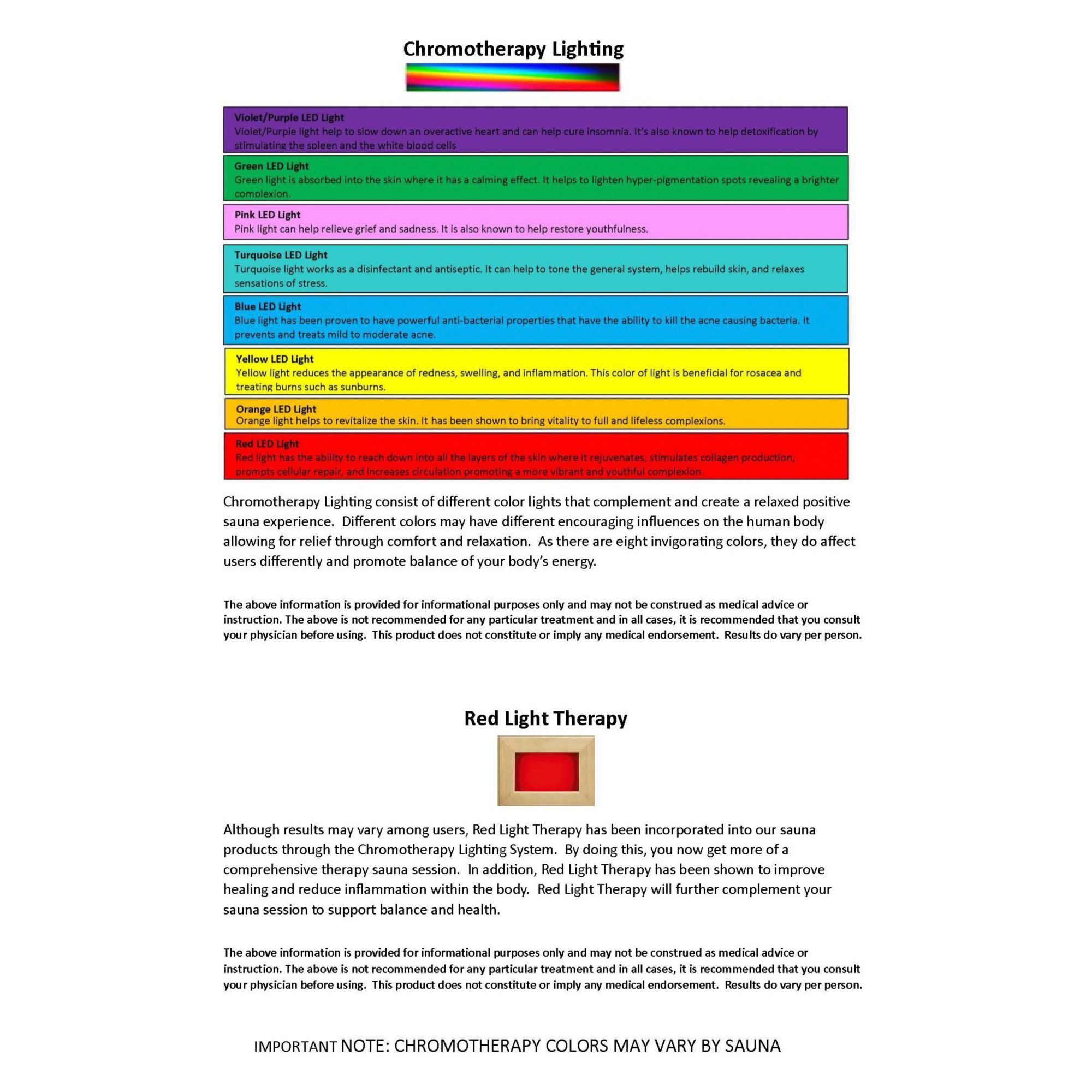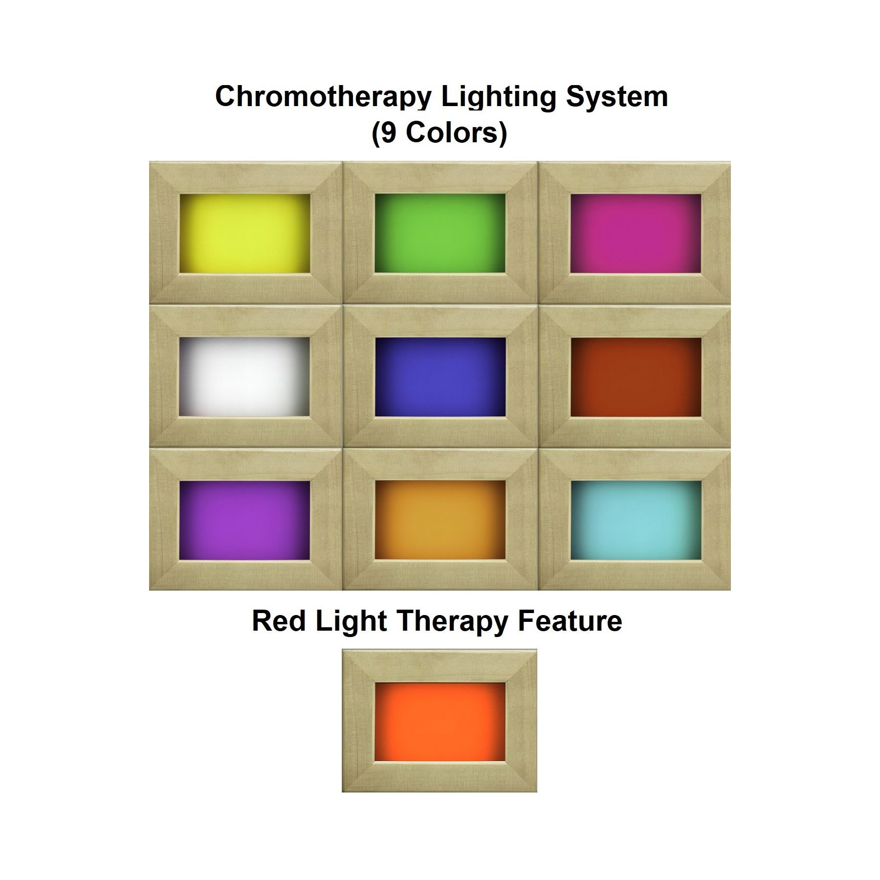 Ultra red light therapy increases collagen production to improve skin health and aid in muscle recovery ,chromotherapy lighting affects mood and helps produce calmness