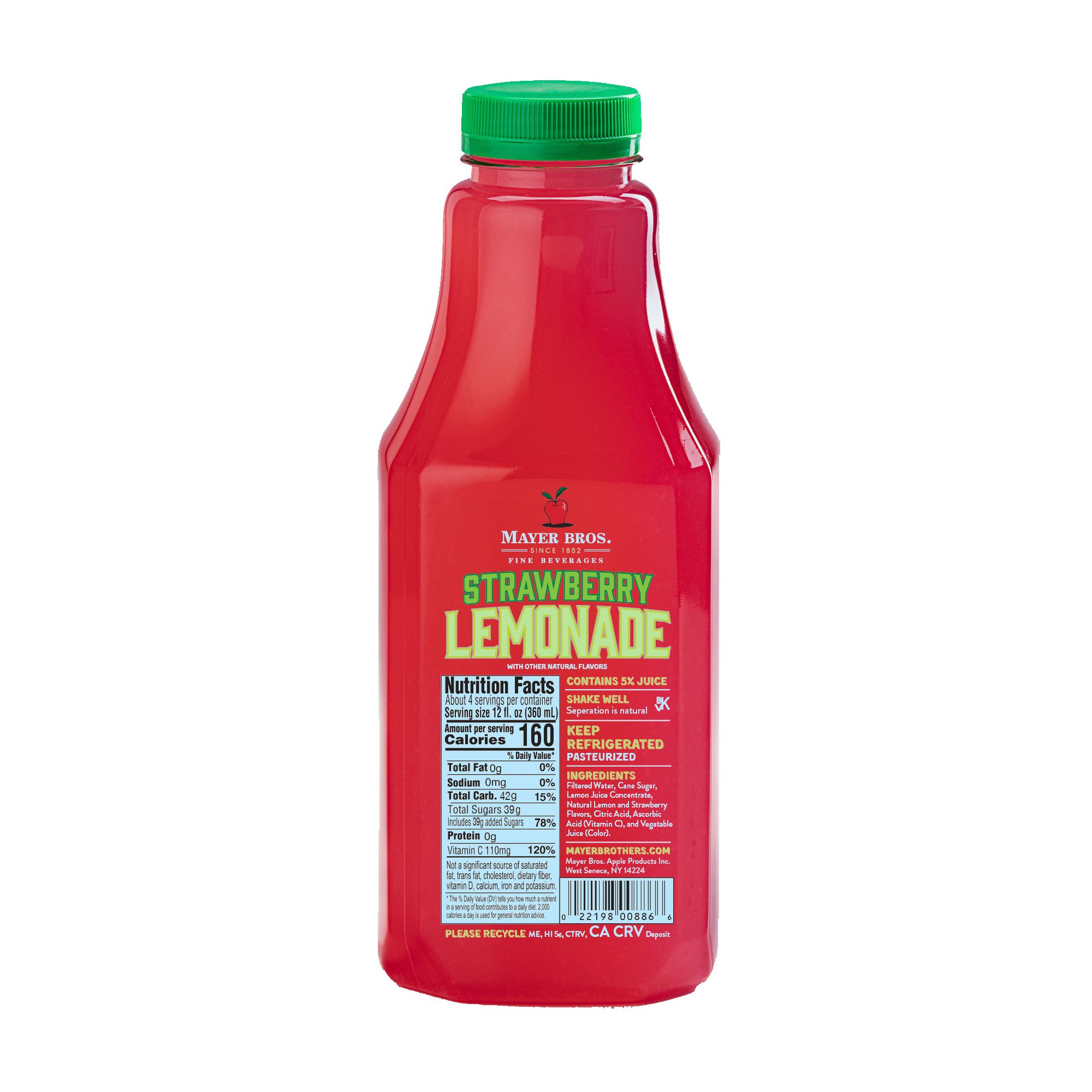 Mayer Bros. Strawberry Lemonade is the perfect addition for any occasion, quenching your thirst and brightening your day. Include Mayer Bros. lemonade at your next party or BBQ and it is sure to be a hit. This lemonade is a perfect drink for all ages, full of flavor and classic character. It's also naturally gluten free and preservative free, maintaining its fresh, clean taste without added artificial ingredients. Its convenient size and great taste, will keep you coming back for more. Grab a bottle of Mayer Bros. Lemonade today and taste the difference.