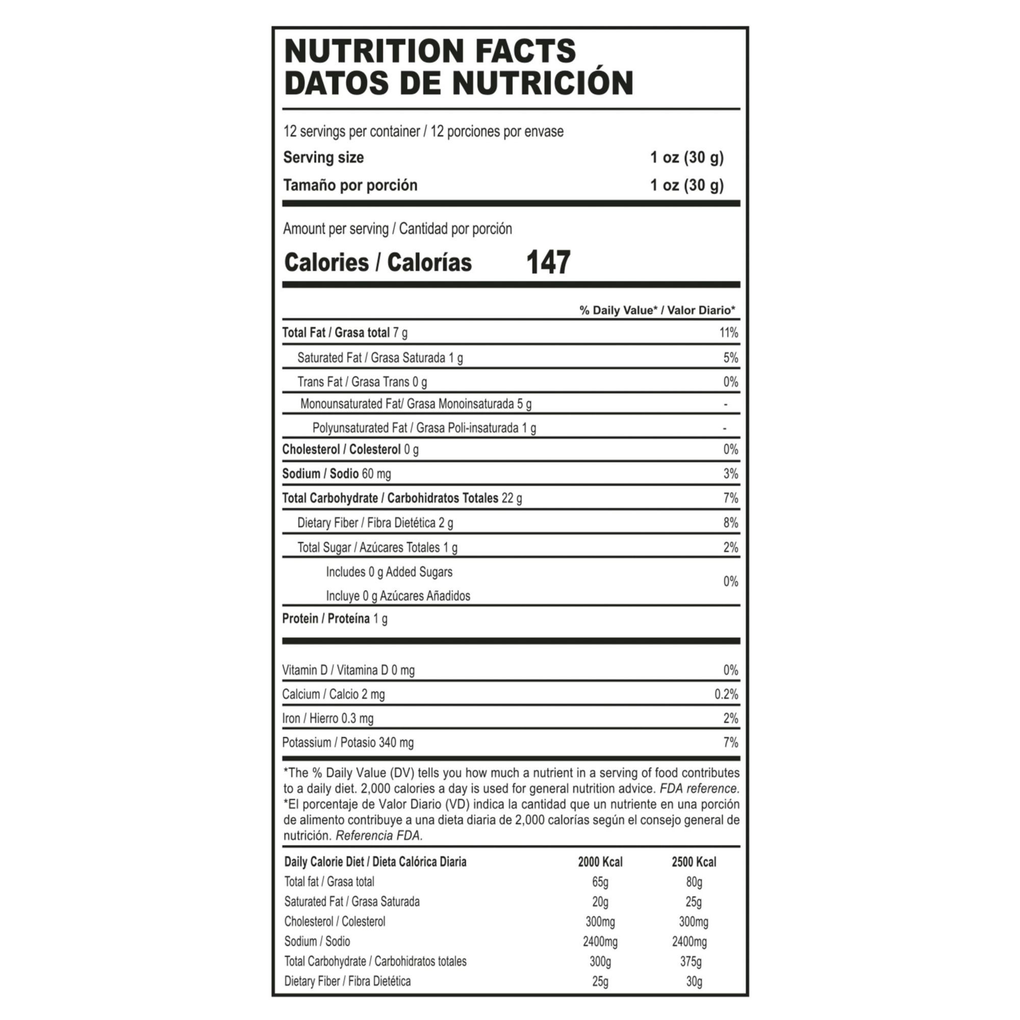 30% less fat than potato chips, trade your everyday potato chip for this fiber packed snack