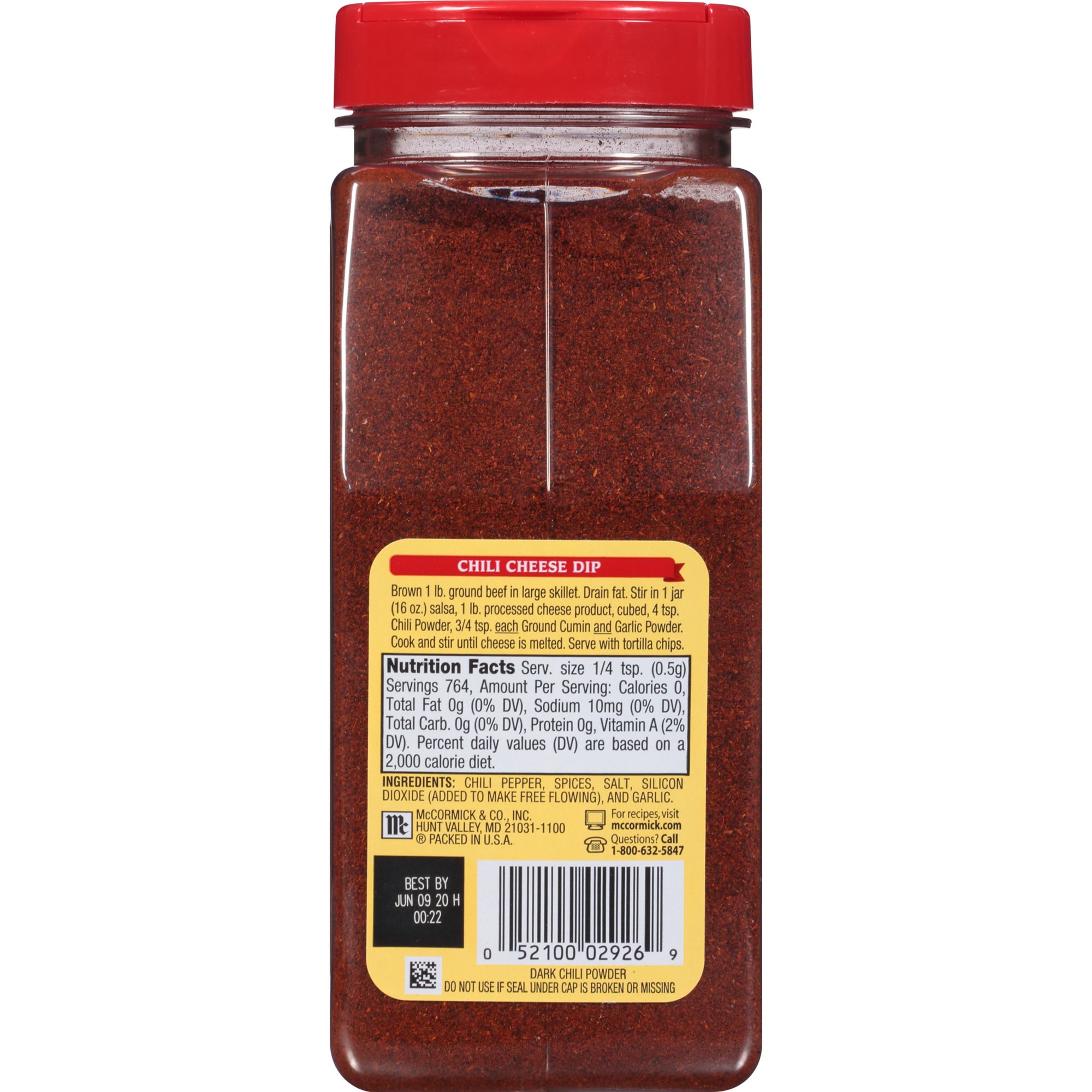 Smoky, slightly sweet blend of premium McCormick chili peppers, salt and spices Larger size for frequent home use Certified Kosher pareve by the Orthodox Union Includes 13.5 oz. of dark chili powder