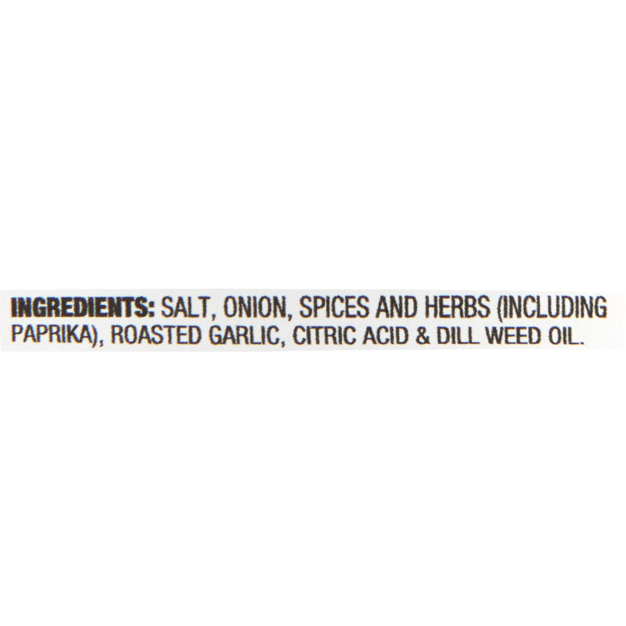 Ingredients: Salt, Onion, Spices And Herbs (Including Paprika), Roasted Garlic, Citric Acid & Dill Weed Oil.
