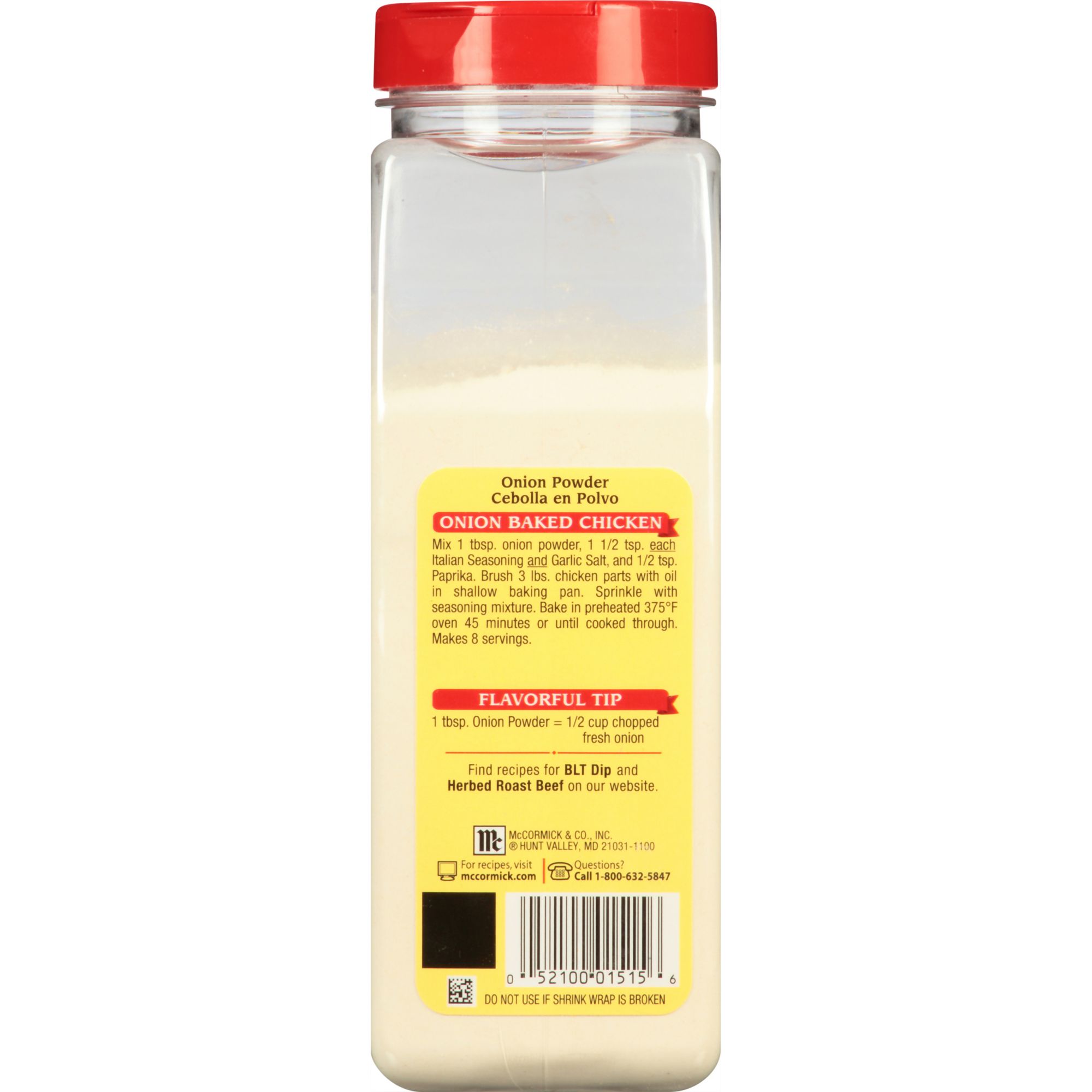 Onion powder accents the fresh flavor or vegetables No MSG added Includes 22 oz. of McCormick onion powder