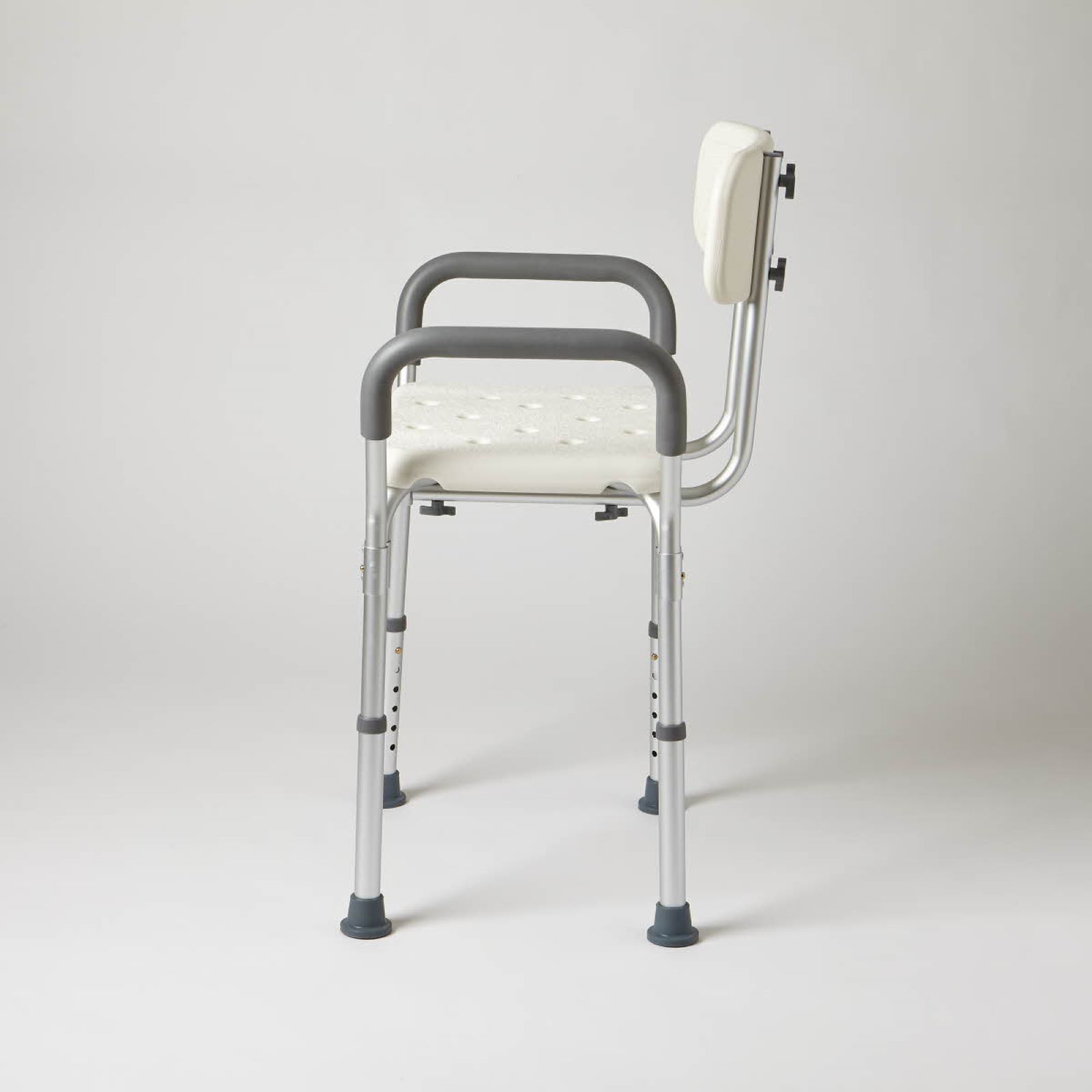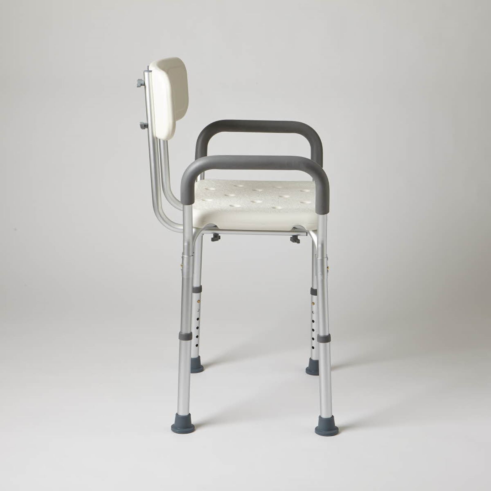 Bench with nonslip feet makes bathing and showering safe and comfortable. Durable, lightweight aluminum frame is height adjustable in 1" increments from 16"-21". Seat is 13-1/2" x 16" and supports up to 350 lbs.
