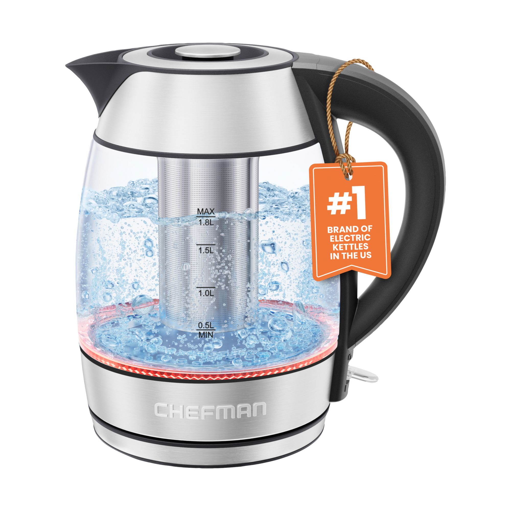 MegaChef 1.7L Glass Stainless Steel Electric Tea Kettle