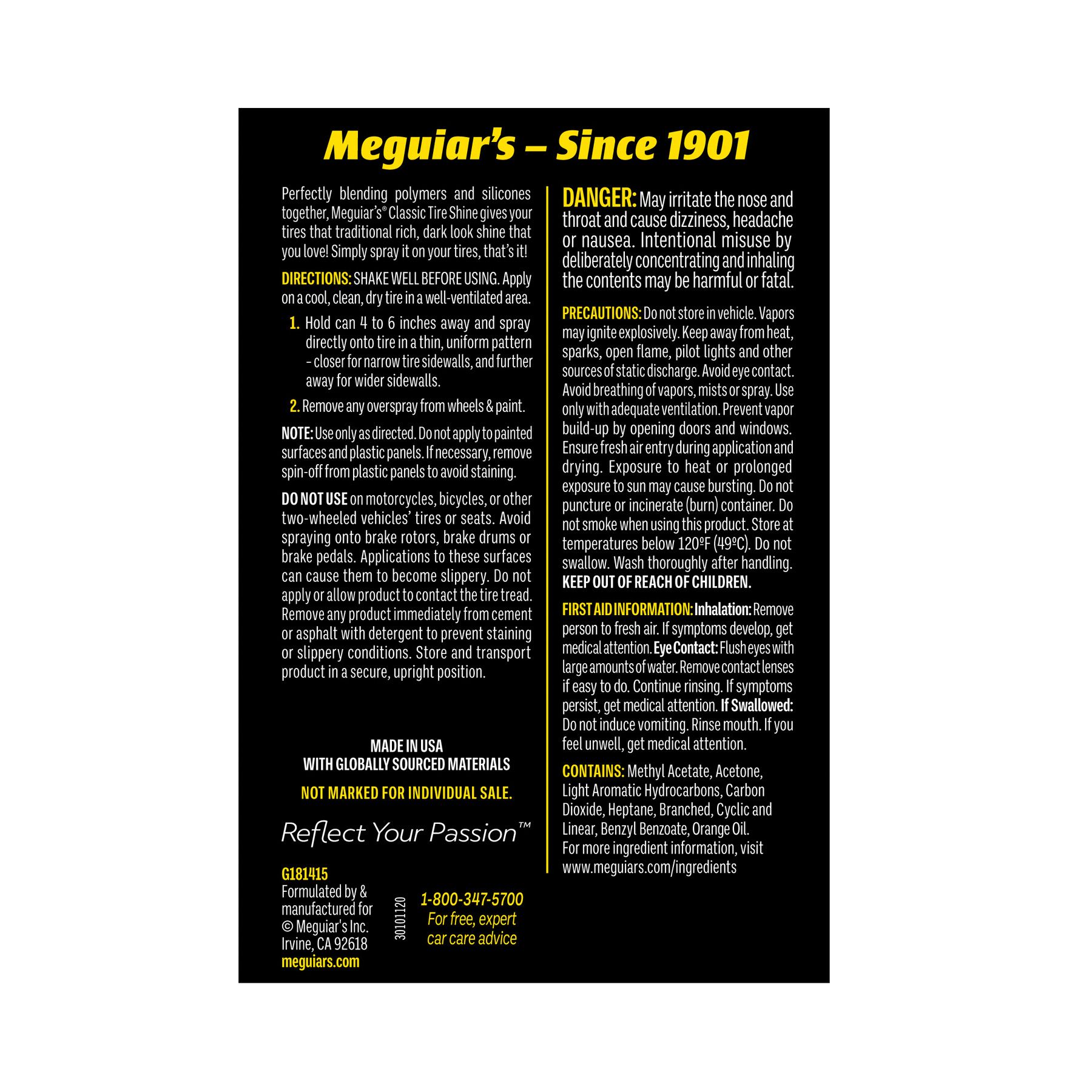 | Compatibility | For tire walls, do not spray on tire tread. Not for use on bikes and motorcycles. |