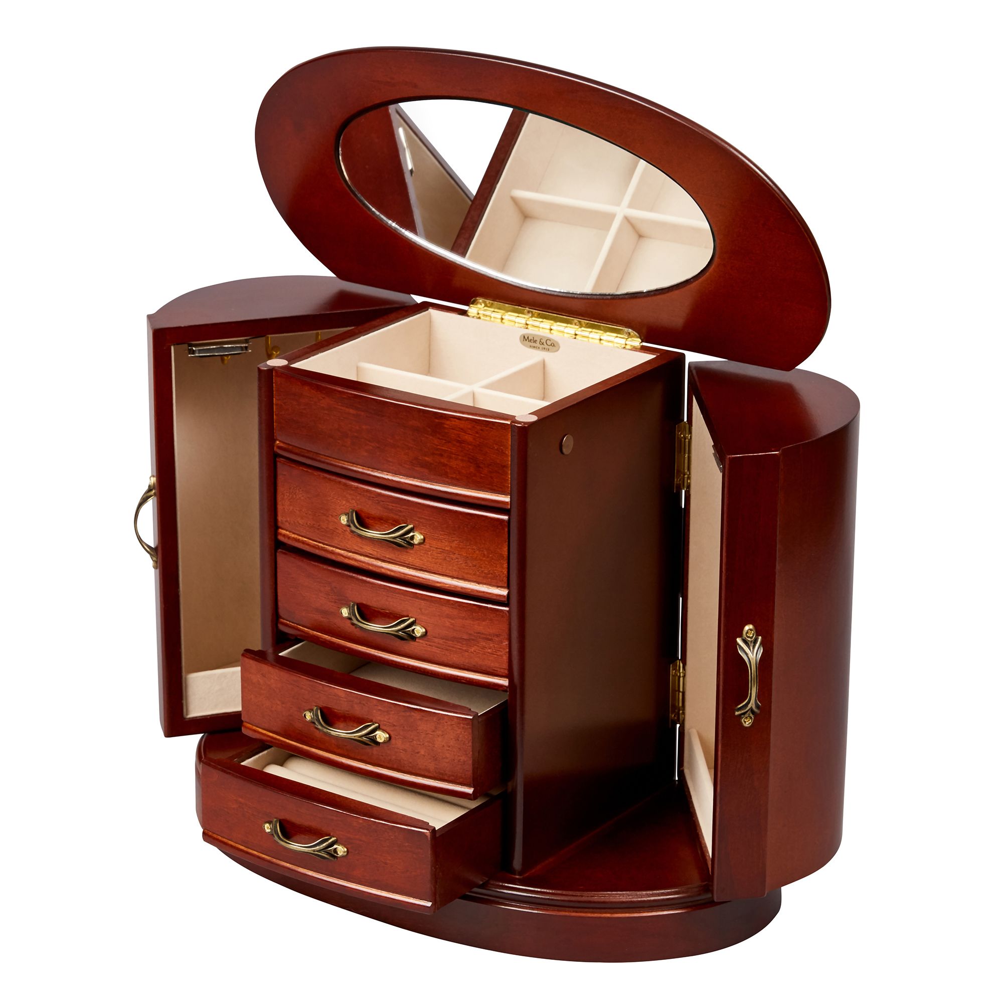 (30 Items)Mele and Co. Heloise Wooden Jewelry Box - Walnut Finish