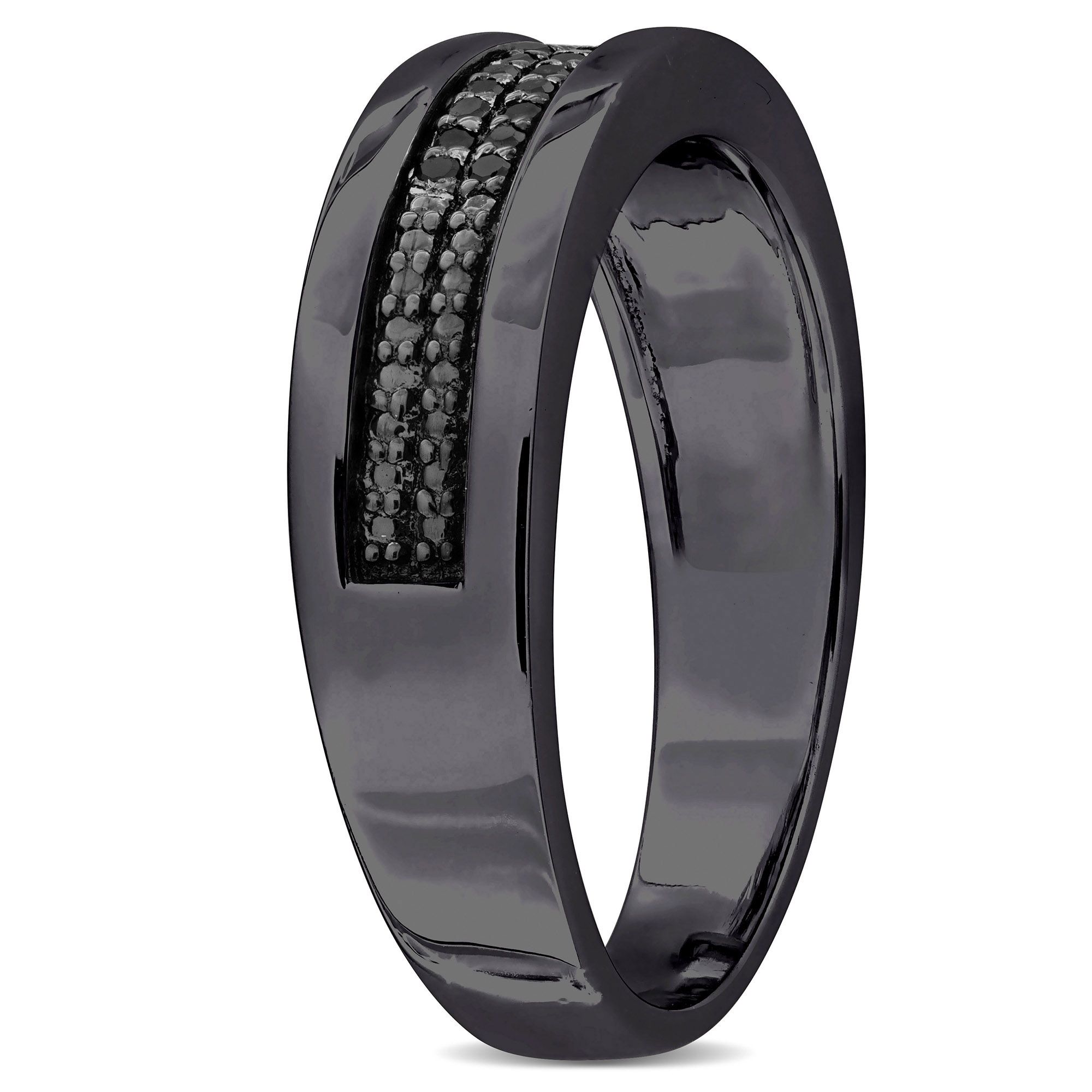 IncludesMen's .1 ct. t.w. Black Diamond Double Row Anniversary Ring in Black Rhodium Silver