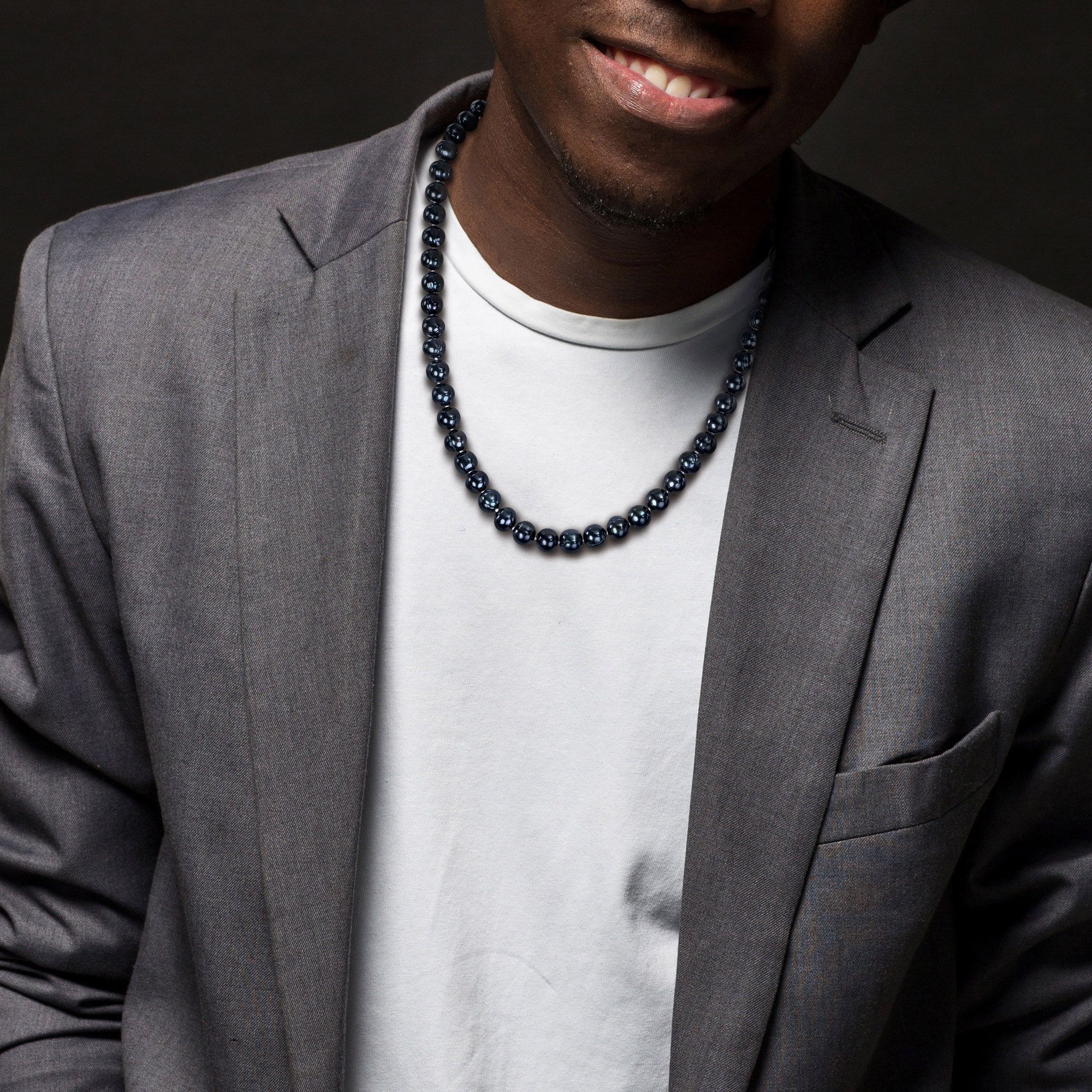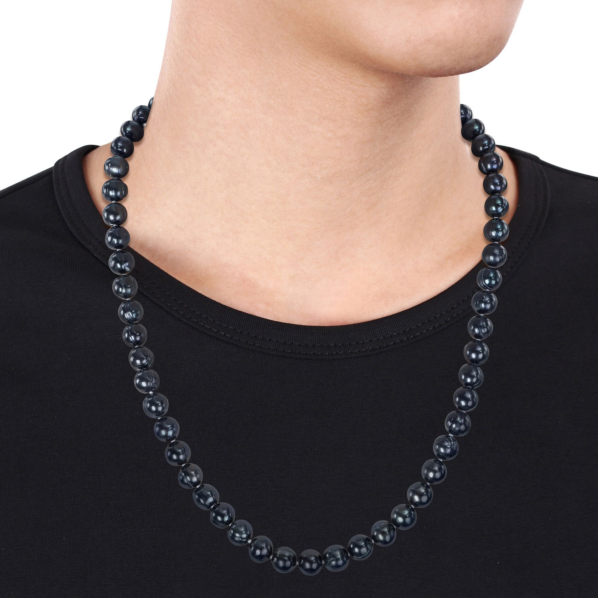 Men's Black Cultured Freshwater Pearl Necklace with Large Sterling Silver Lobster Clasp-20 in.