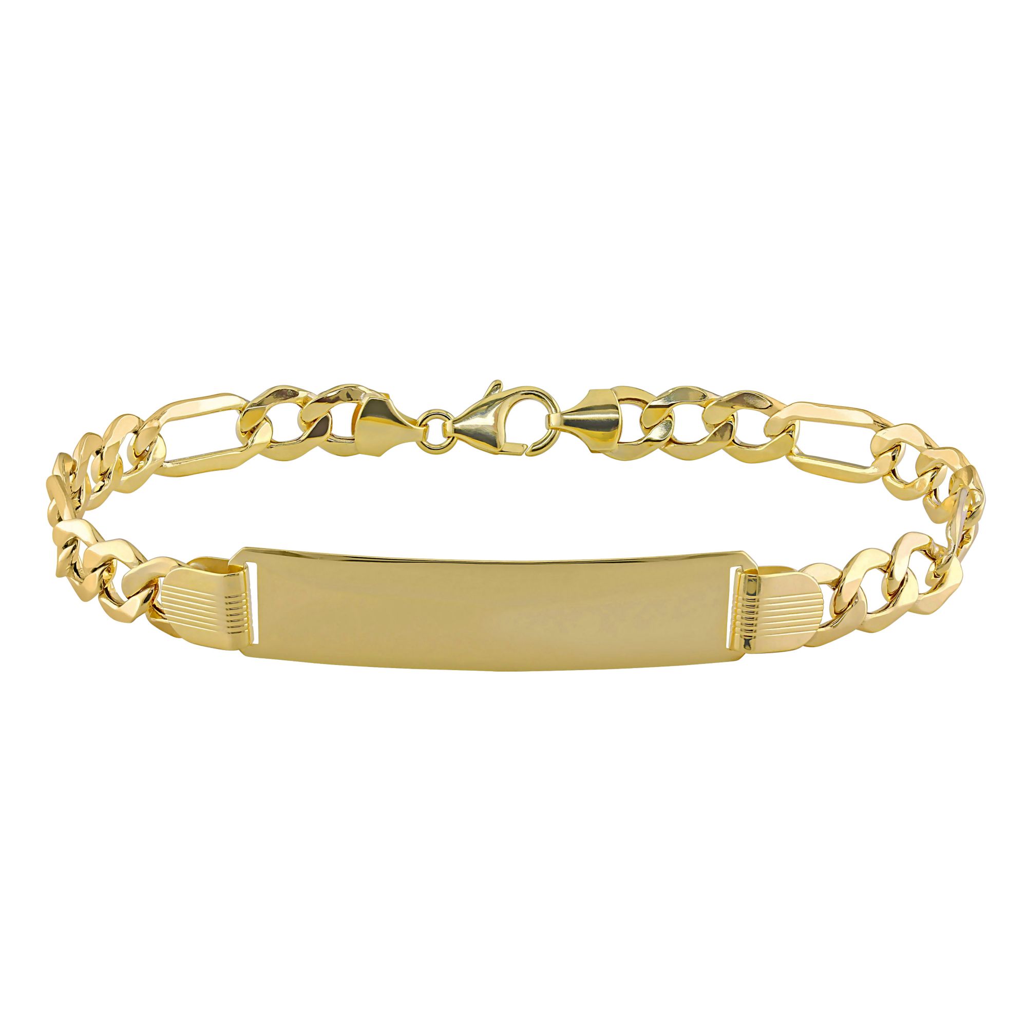 Men's Engravable Figaro Link ID Bracelet in 10k Yellow Gold