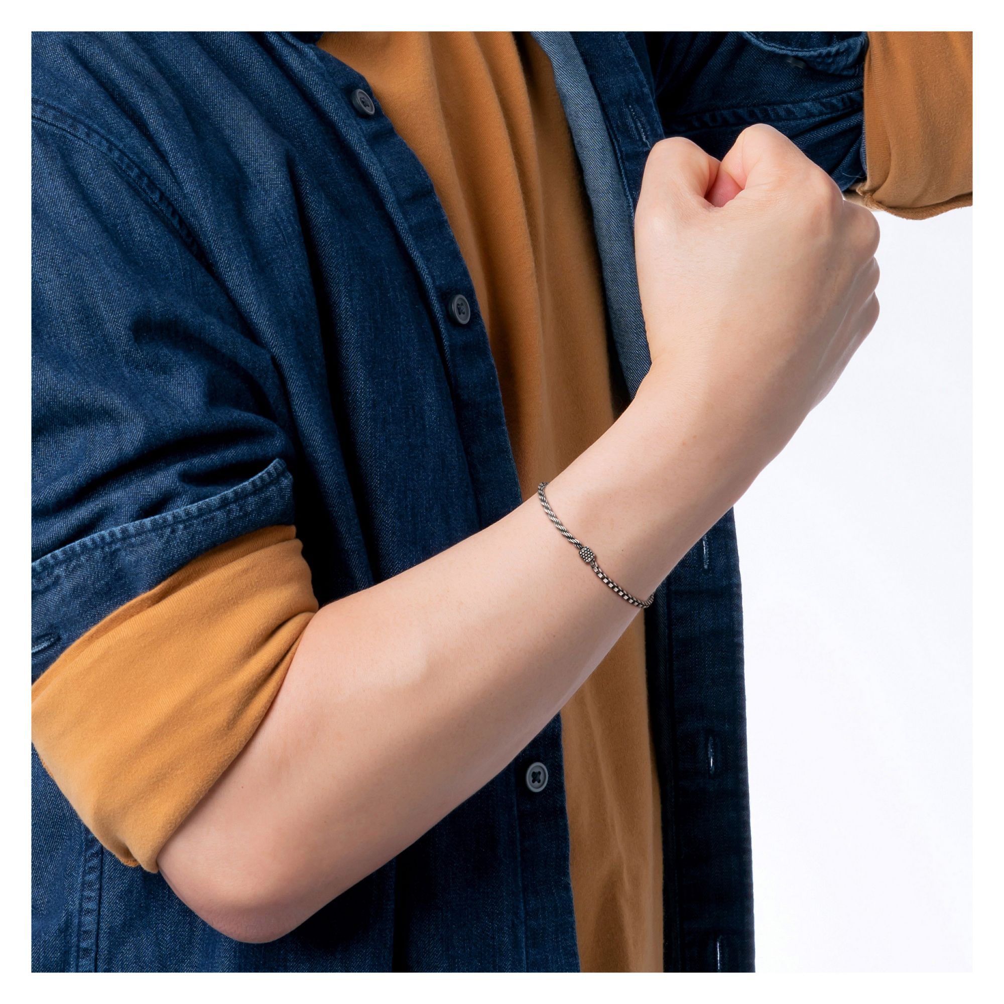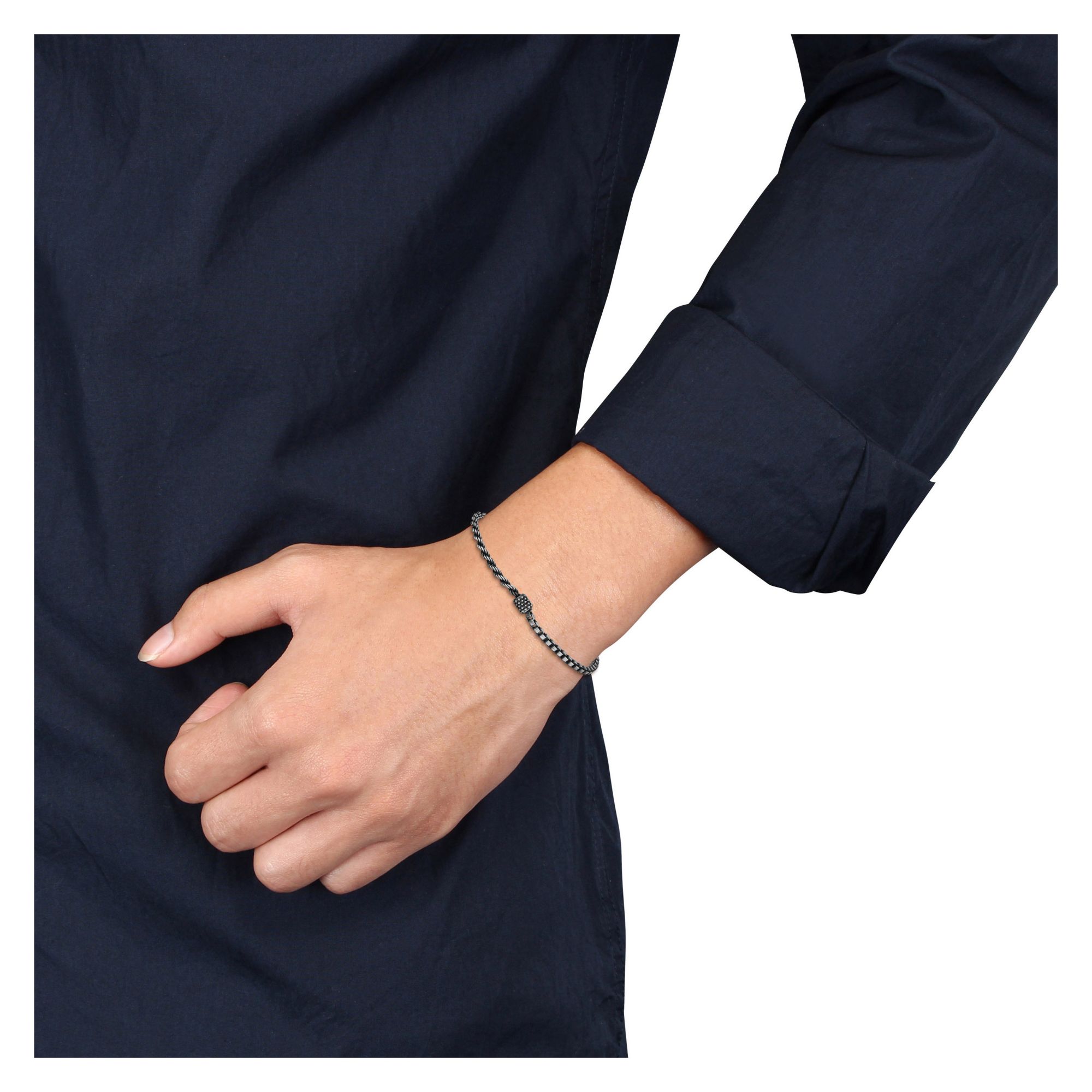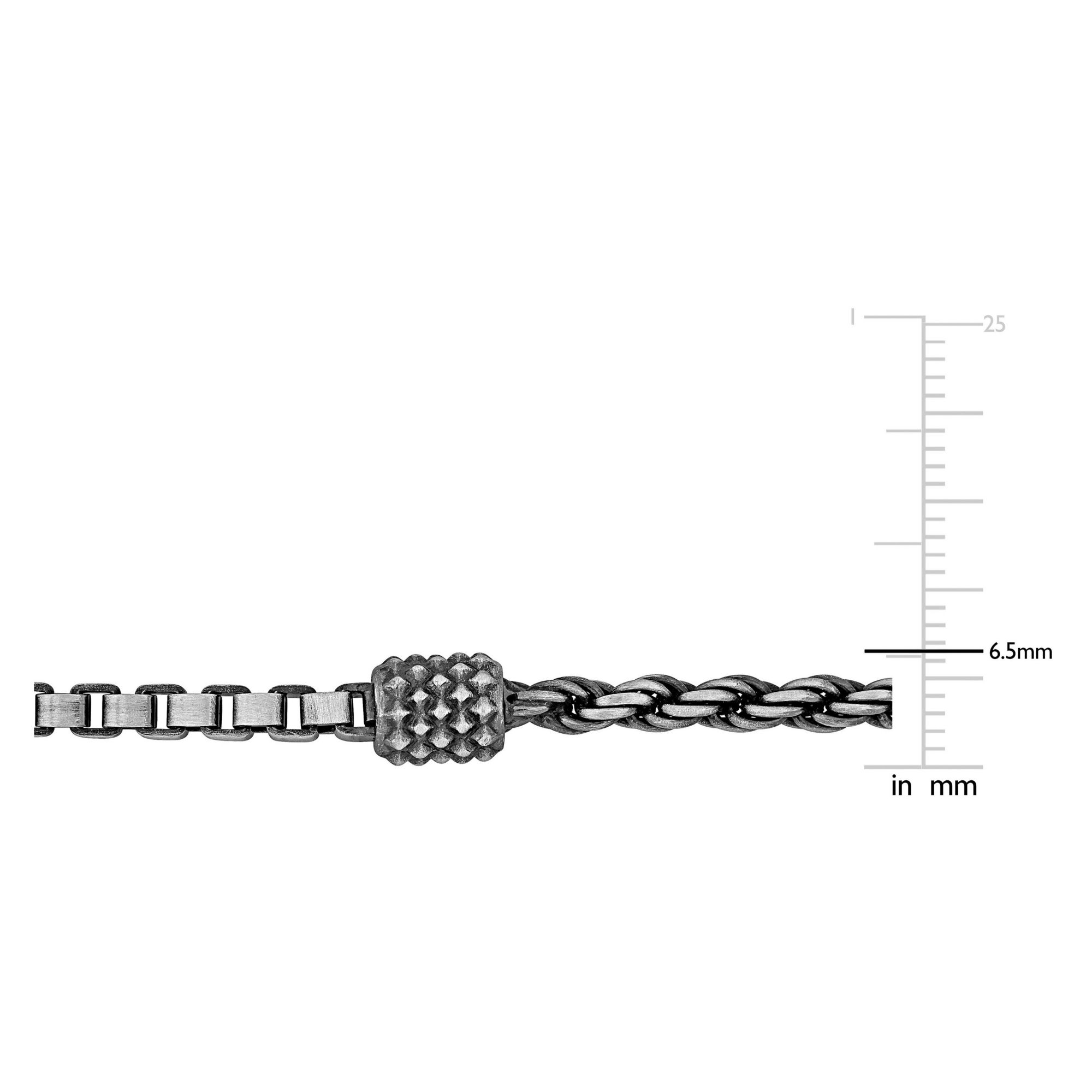 Men's Silver Oxidized Half Rope+Half Box Bracelet - 9"