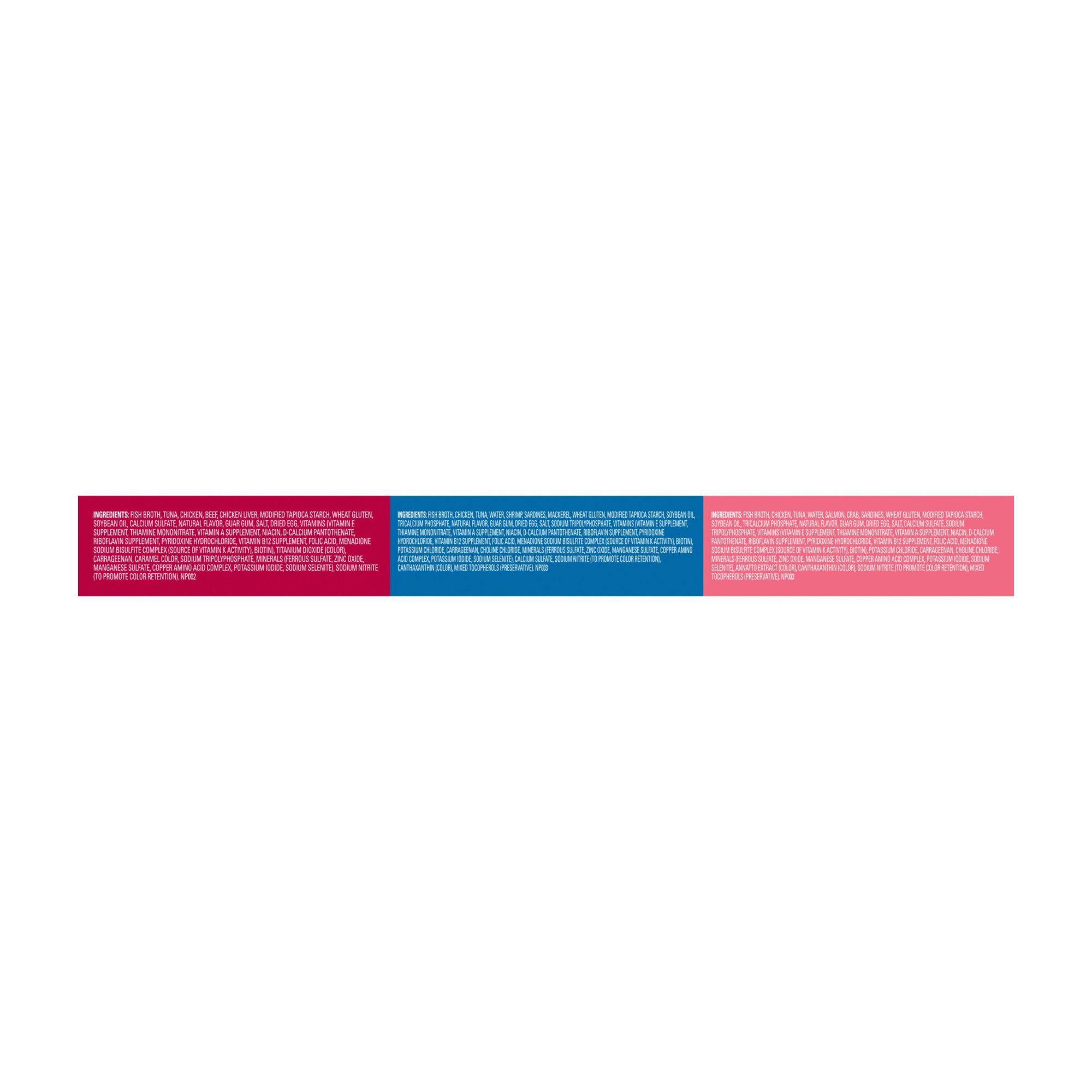 Made with tender pieces of real tuna and whole shrimp, salmon and crab, or chicken and beef in a savory sauce cats love