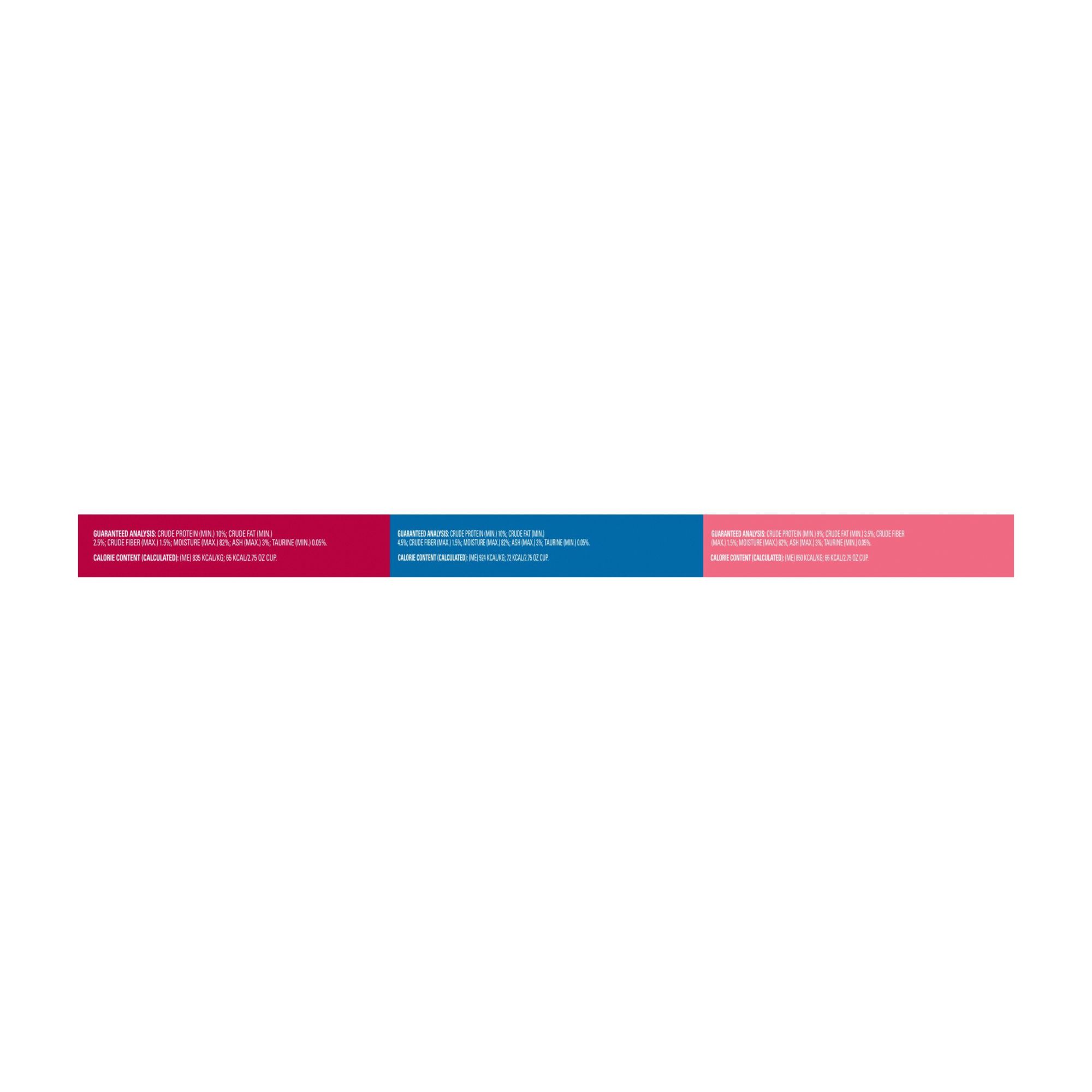 12 cups of Tenders in Sauce With REAL Tuna & Whole Shrimp, 12 cups of Tenders in Sauce With REAL Chicken & Beef, and 12 cups of Tenders in Sauce With REAL Salmon & Crab