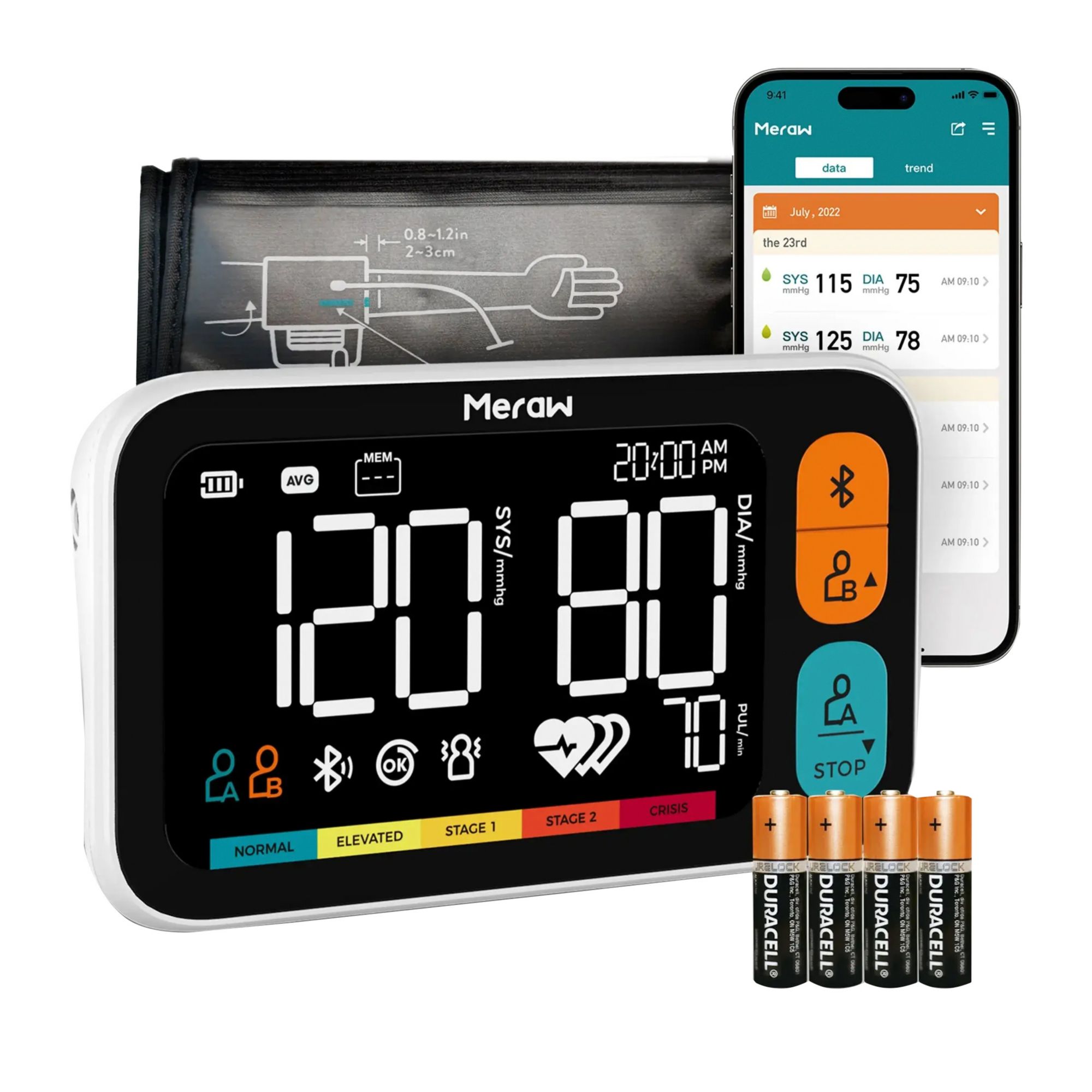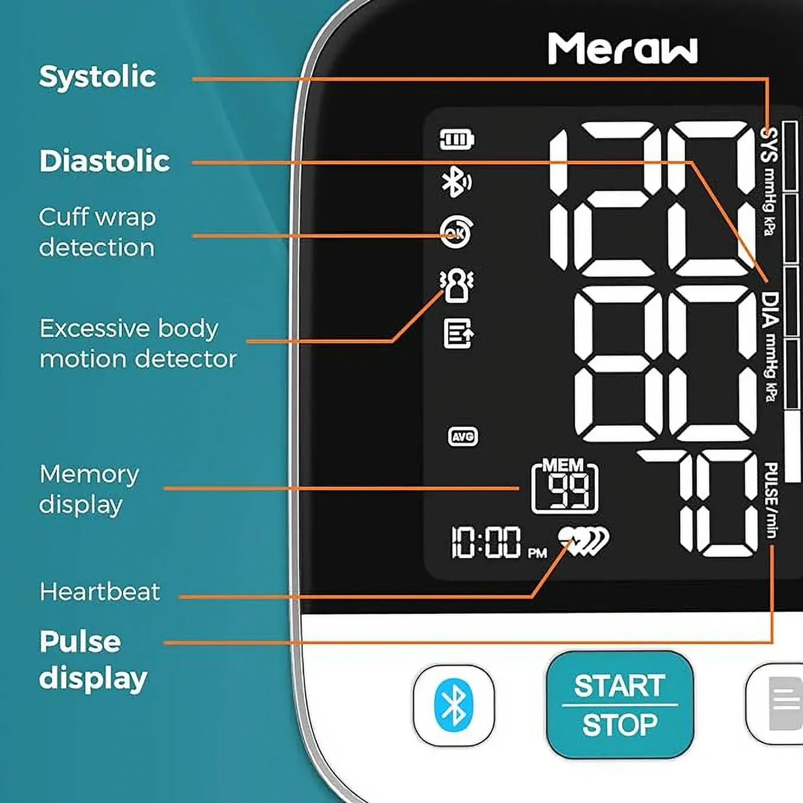 Meraw One-Touch Backlit LCD Blood Pressure Monitor with Bluetooth & App