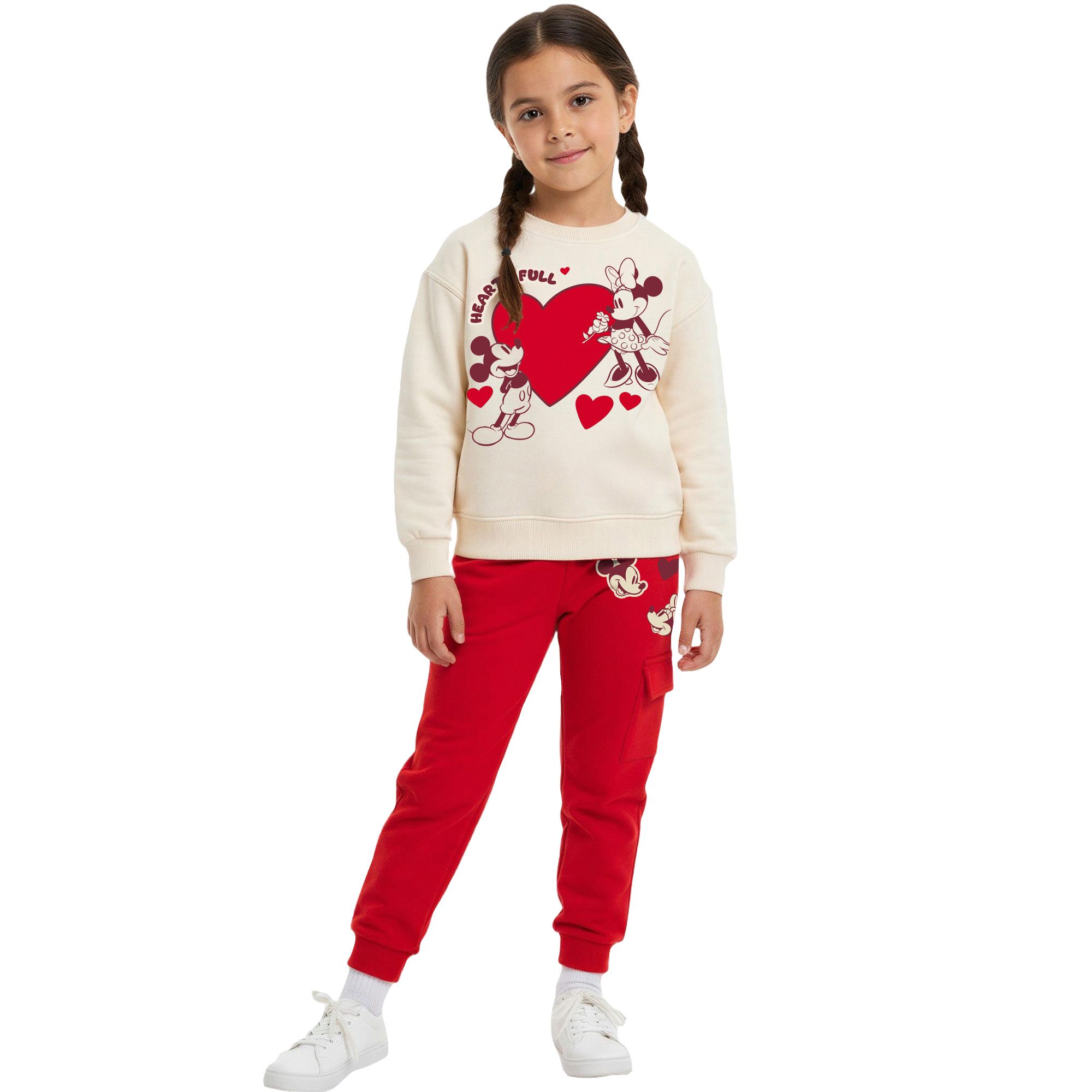 This Minnie Mouse and Mickey Mouse fleece jogger set surrounds toddler girls in soft, cozy comfort with fabric designed for all day wear. The Valentine inspired design adds a sweet, festive touch that little ones adore, while the cargo pocket detail offers a fun and practical place for carrying small treasures. Thoughtfully crafted for warmth, ease of movement and playful style, this set blends classic character charm with functional comfort for everyday adventures.