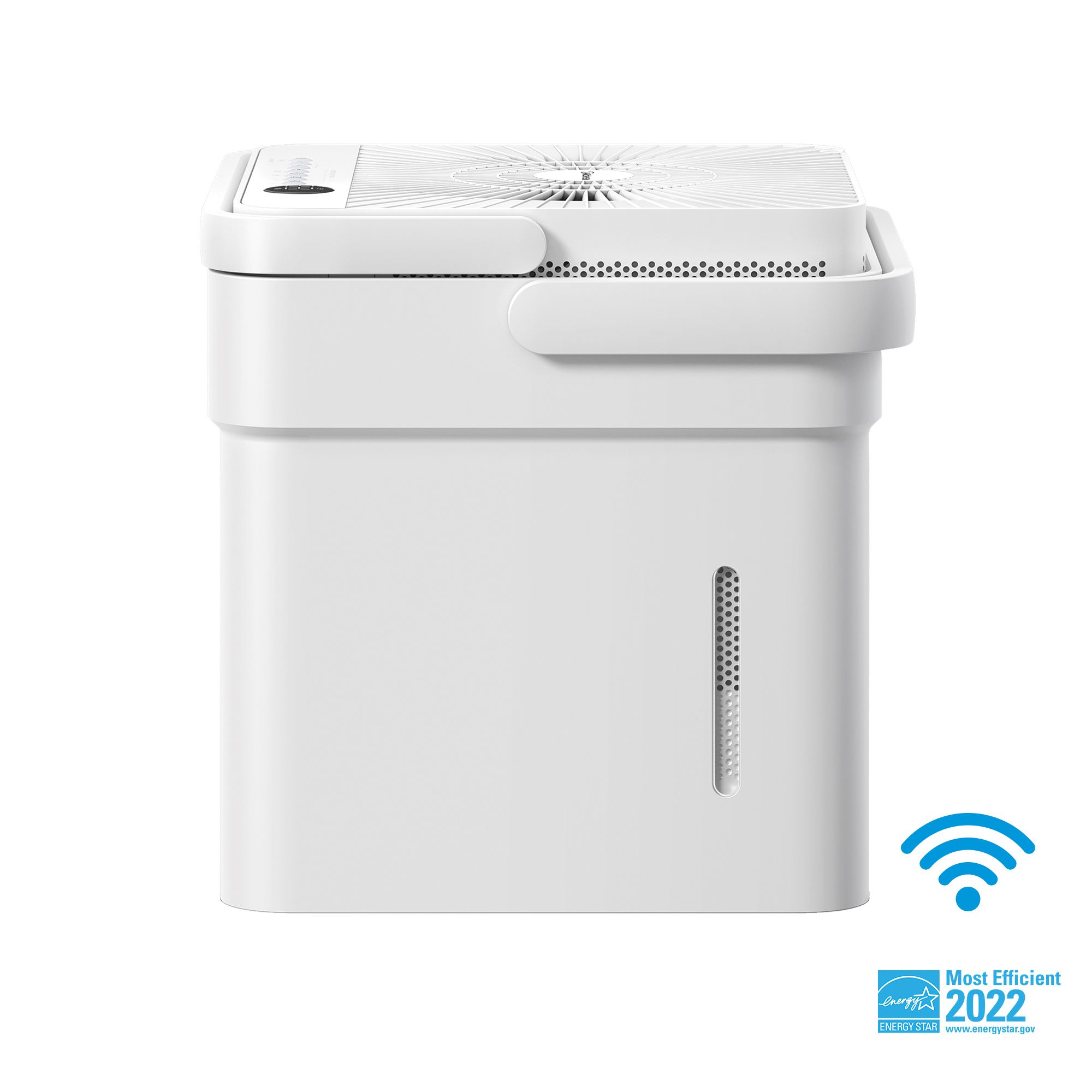 The Midea Cube 50-Pint Dehumidifier with Smart Wi-Fi is for up to 4500 sq. ft. compact size for home, basements, medium-sized rooms, and bathrooms. This air conditioner works with Alexa (White). It is rated Energy Star's Most Efficient 2021.