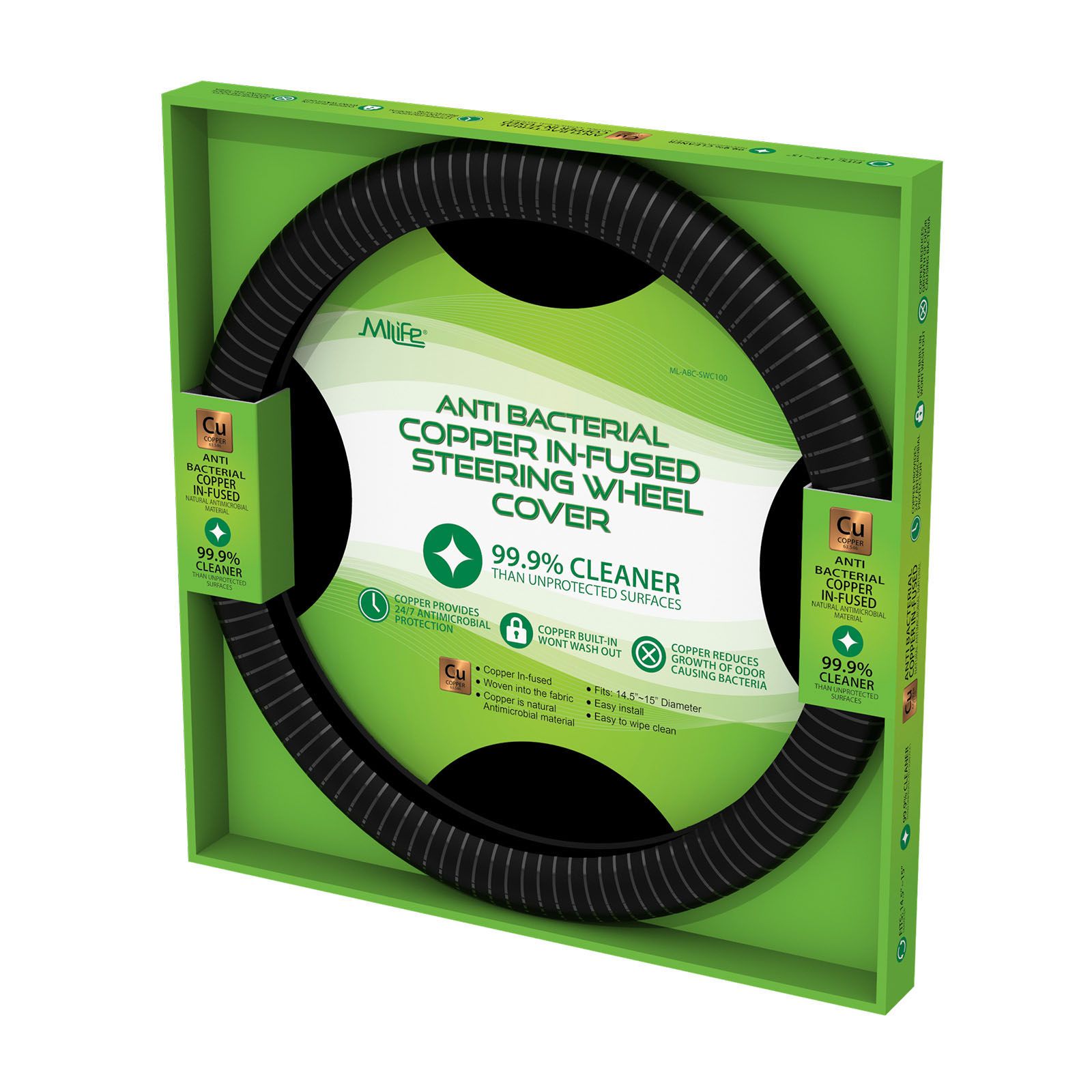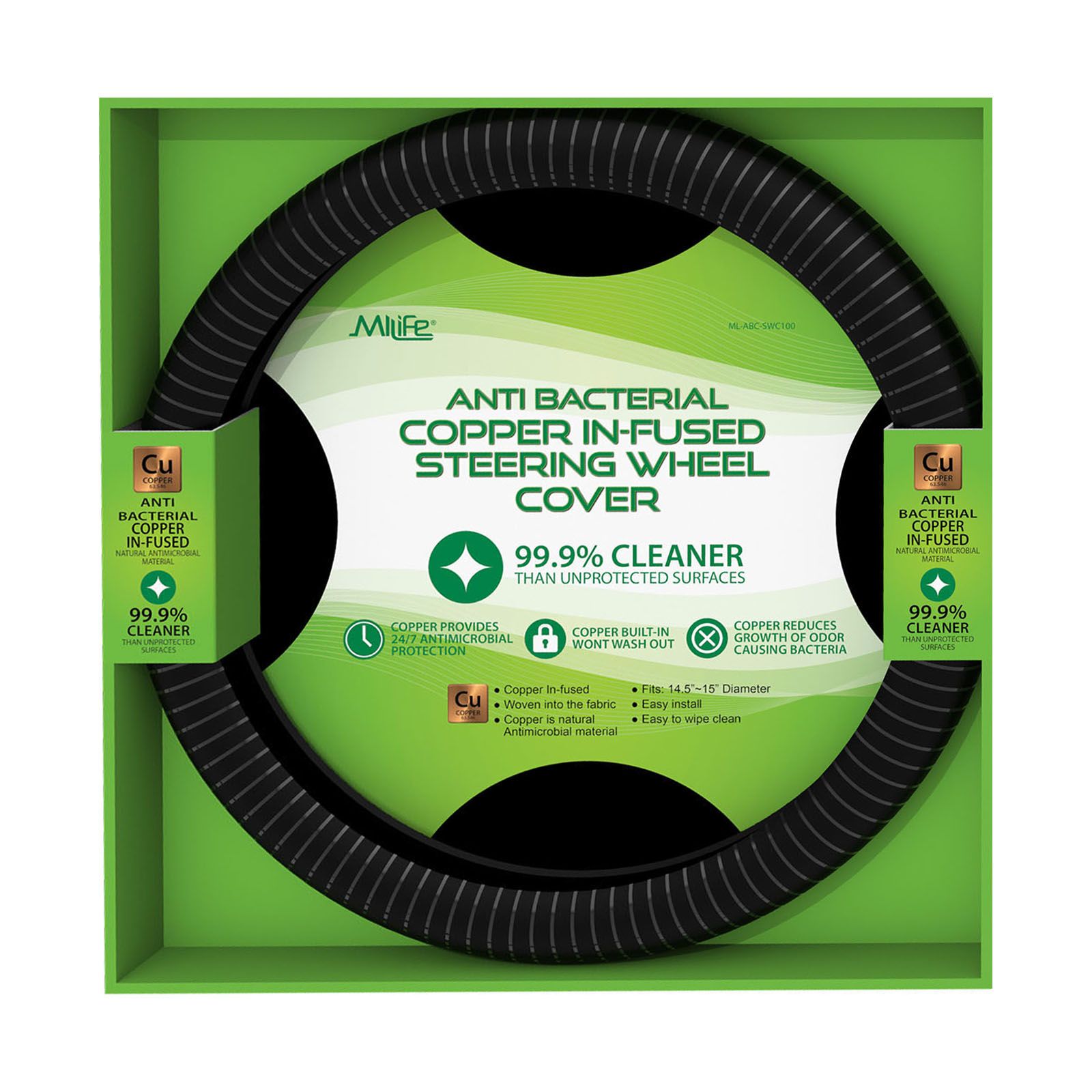MiLife Health Antimicrobial Copper Infused Steering Wheel Cover