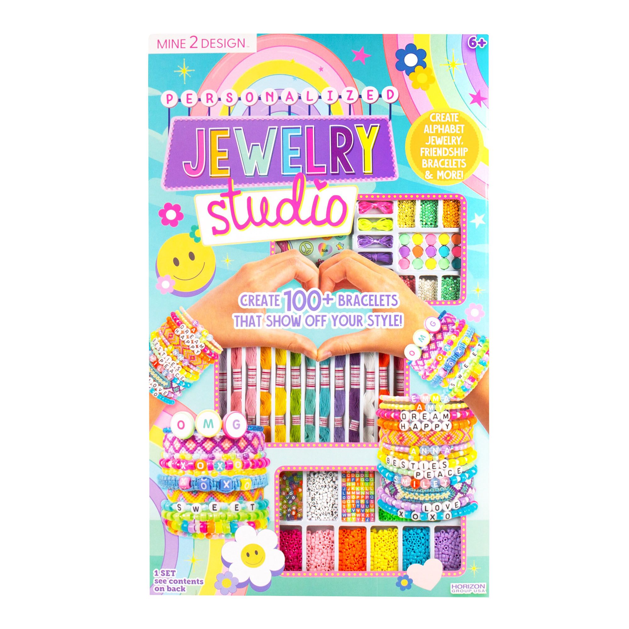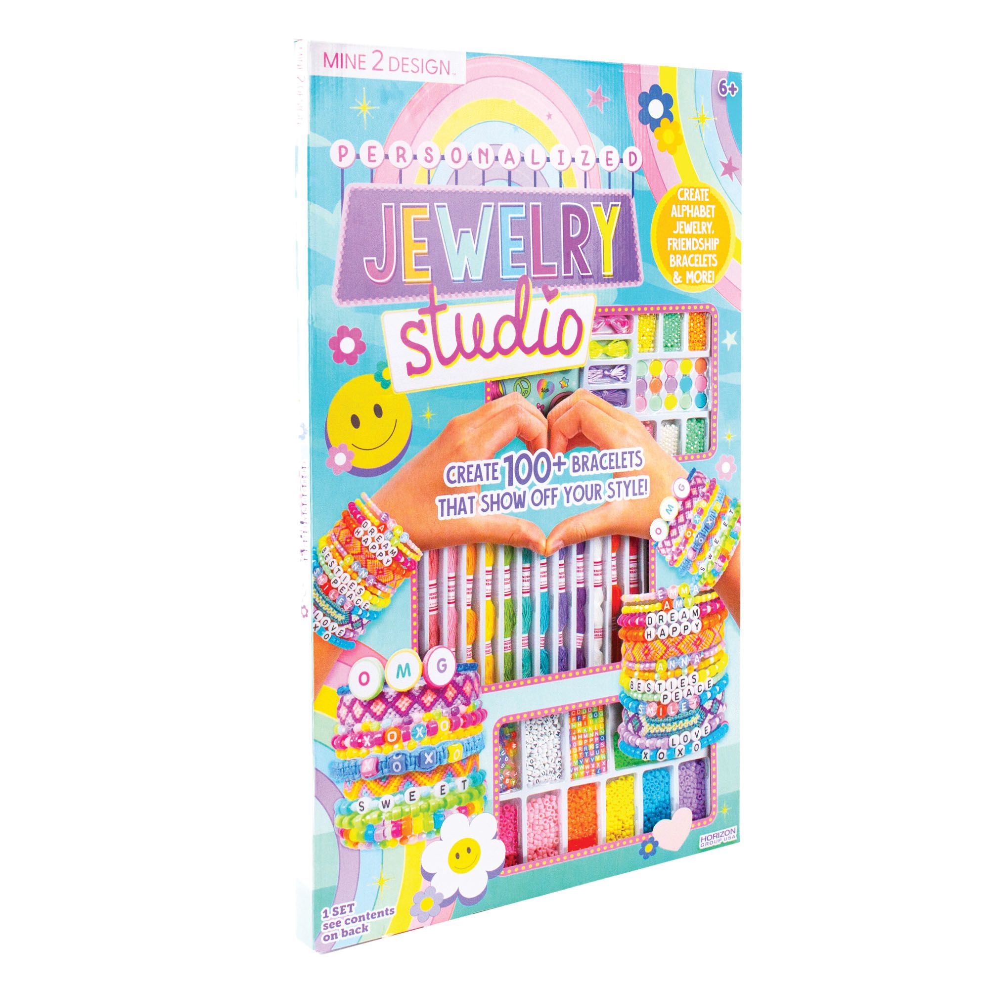 Spell out your style with the Mine 2 Design Personalized Jewelry Studio. Complete with thousands of colorful beads - including every letter of the alphabet - and a vibrant assortment of three different types of cording, this DIY bracelet-making kit has everything you need to create over 100 accessories to wear and share. Jump right in and start creating or following the easy-to-understand instructions to learn how to master the trendiest friendship bracelet designs - from macramé to chevrons, knotted diagonals, and more.
