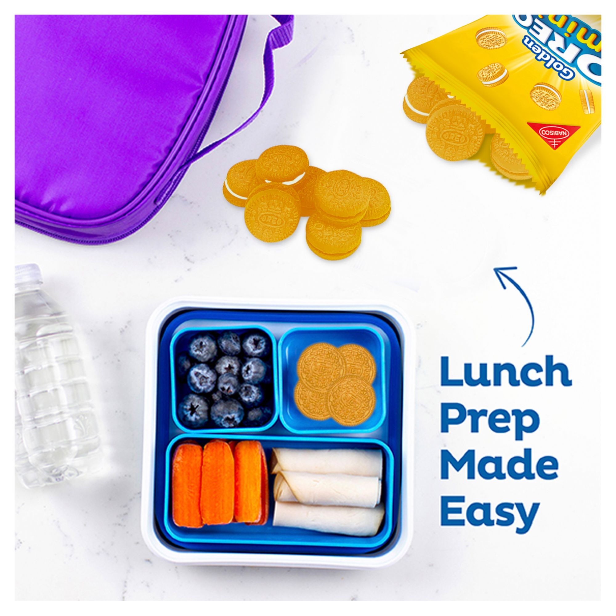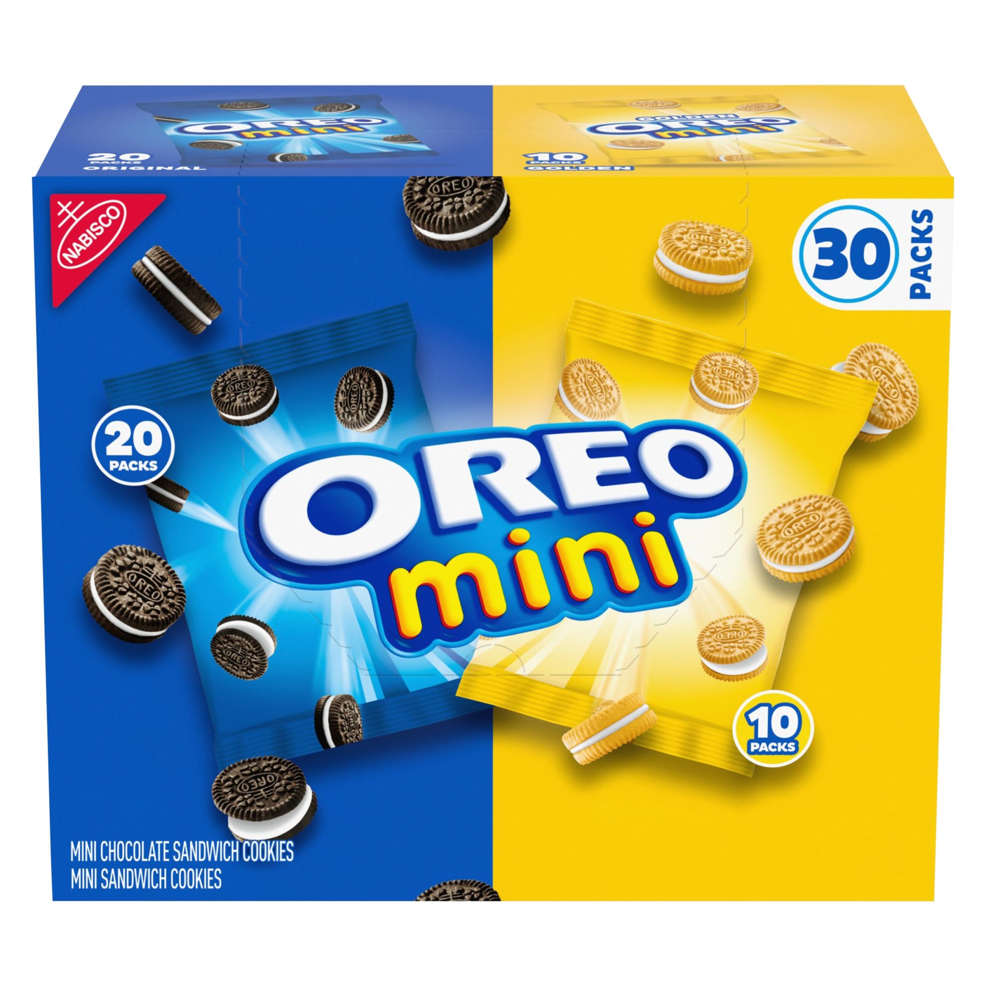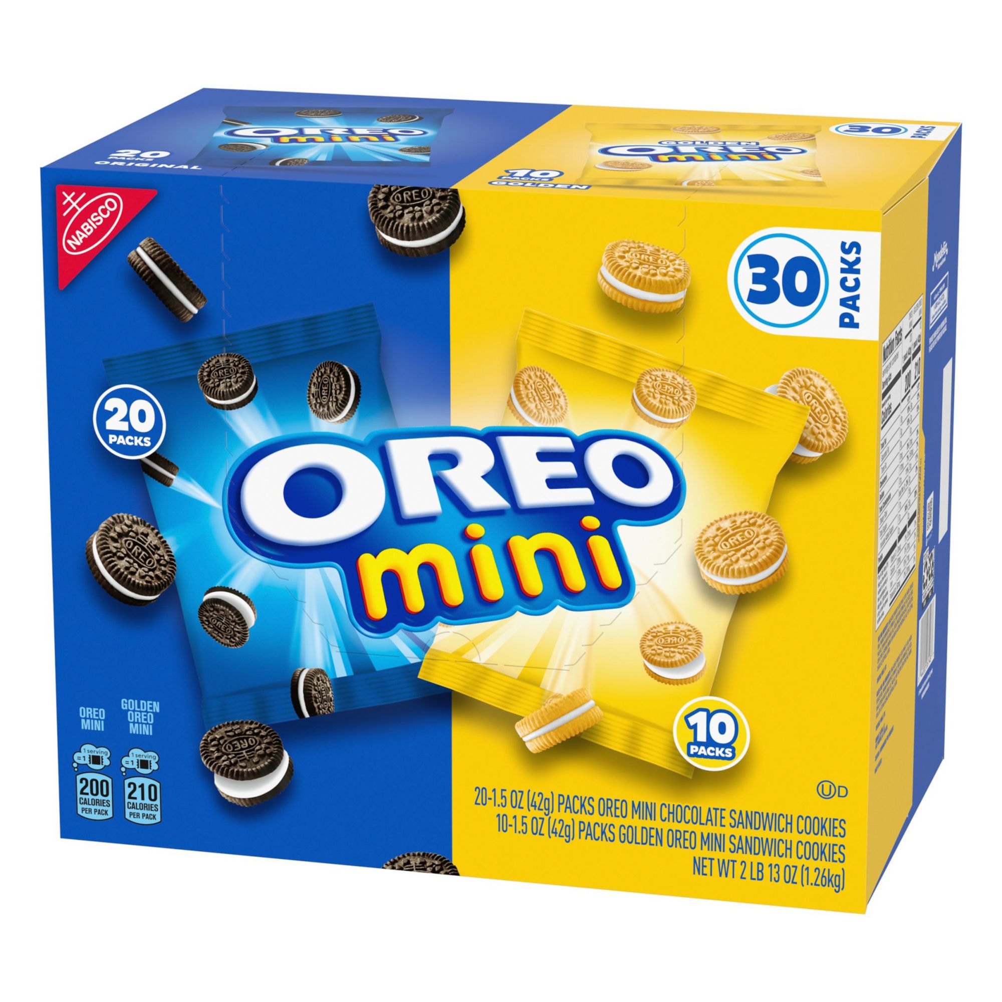 Includes 20 Original Oreo Mini cookies and 10 Golden Oreo Mini cookies snack packs