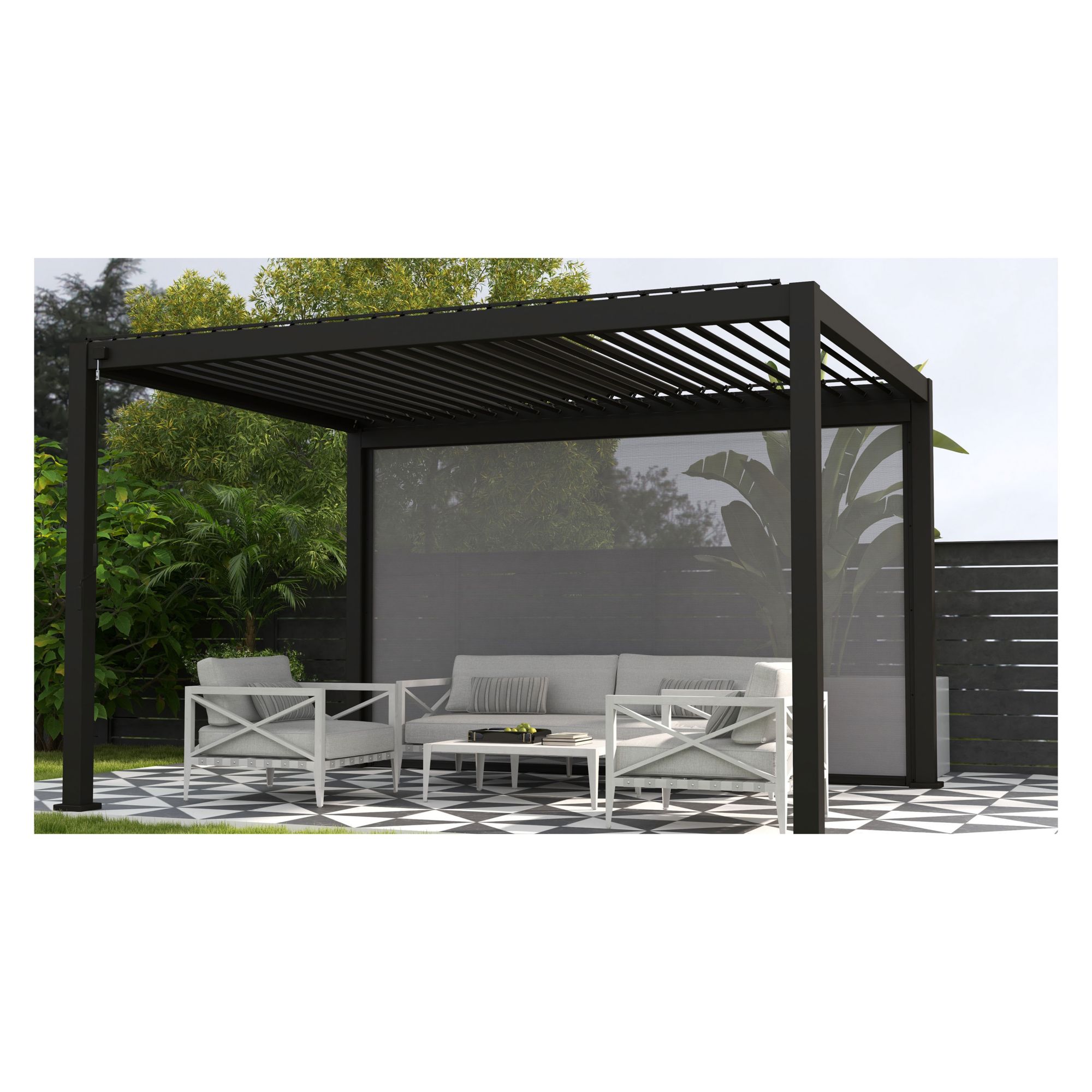 Mirador 10' x 13' Adjustable Aluminum Louvered Pergola with Privacy Screen - Charcoal