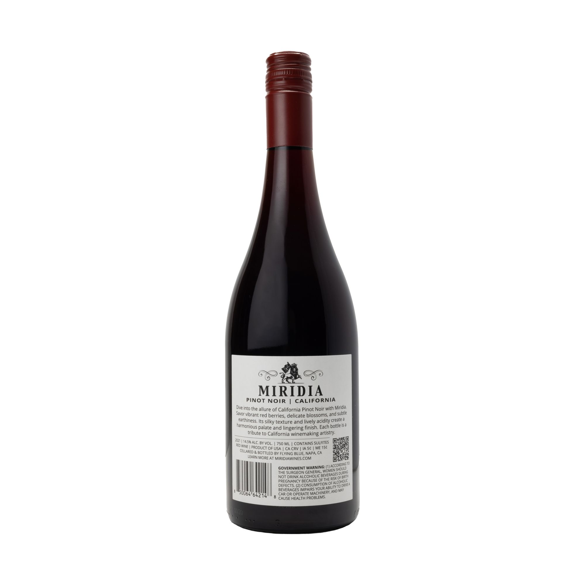 One 750mL bottle of Miridia Pinot Noir containing five 5-oz servings of wine