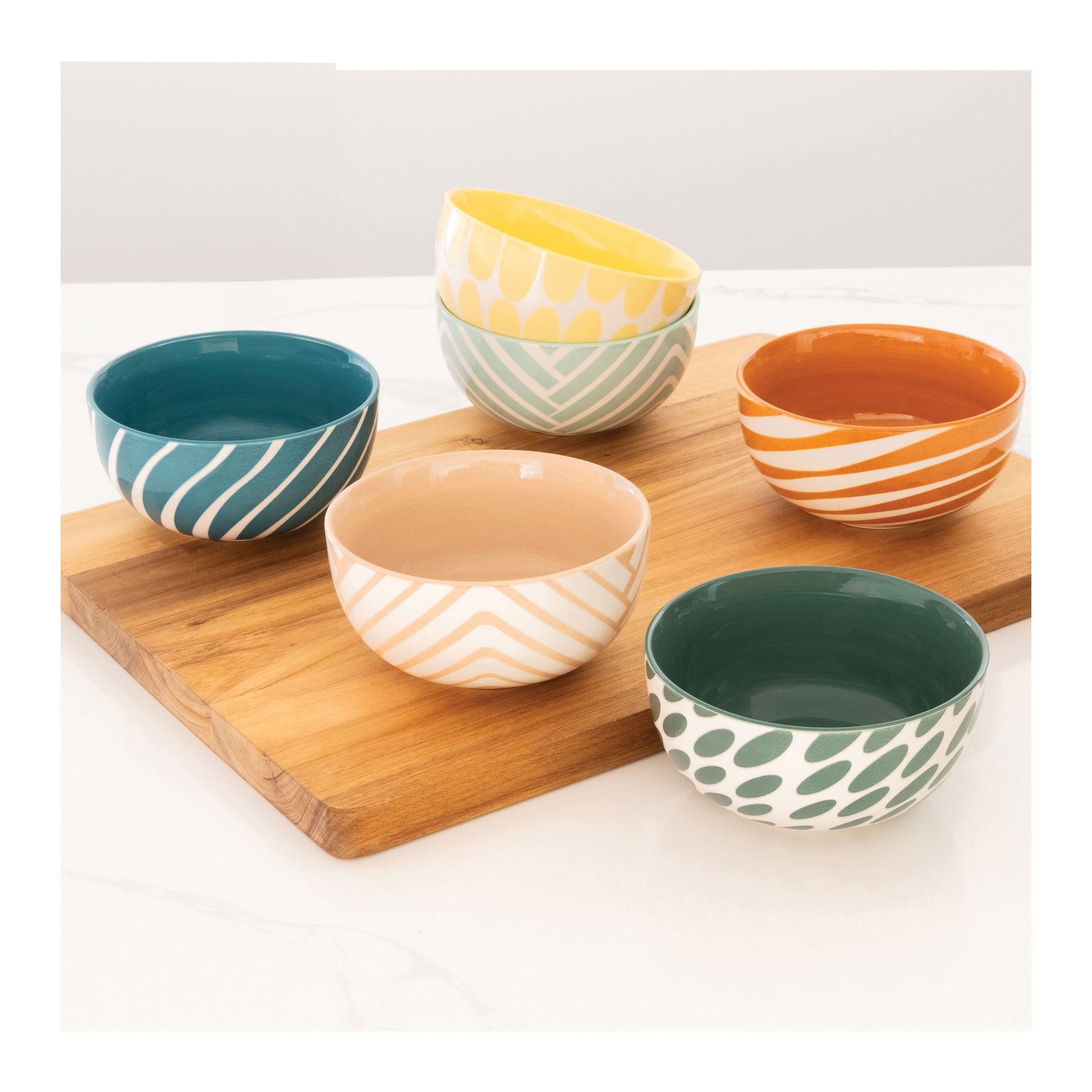 This six piece all-purpose bowl set by Baum is perfect for entertaining or everyday use. The bowls are perfectly sized for serving anything from cereal to salad or soups & snacks. Great to use as prep bowls when cooking or for Taco Tuesday. Made of durable stoneware, they are dishwasher and microwave-safe for easy care and are great for entertaining and everyday use. The Fashion Art Deco Print adds a fresh look to your everyday dining.