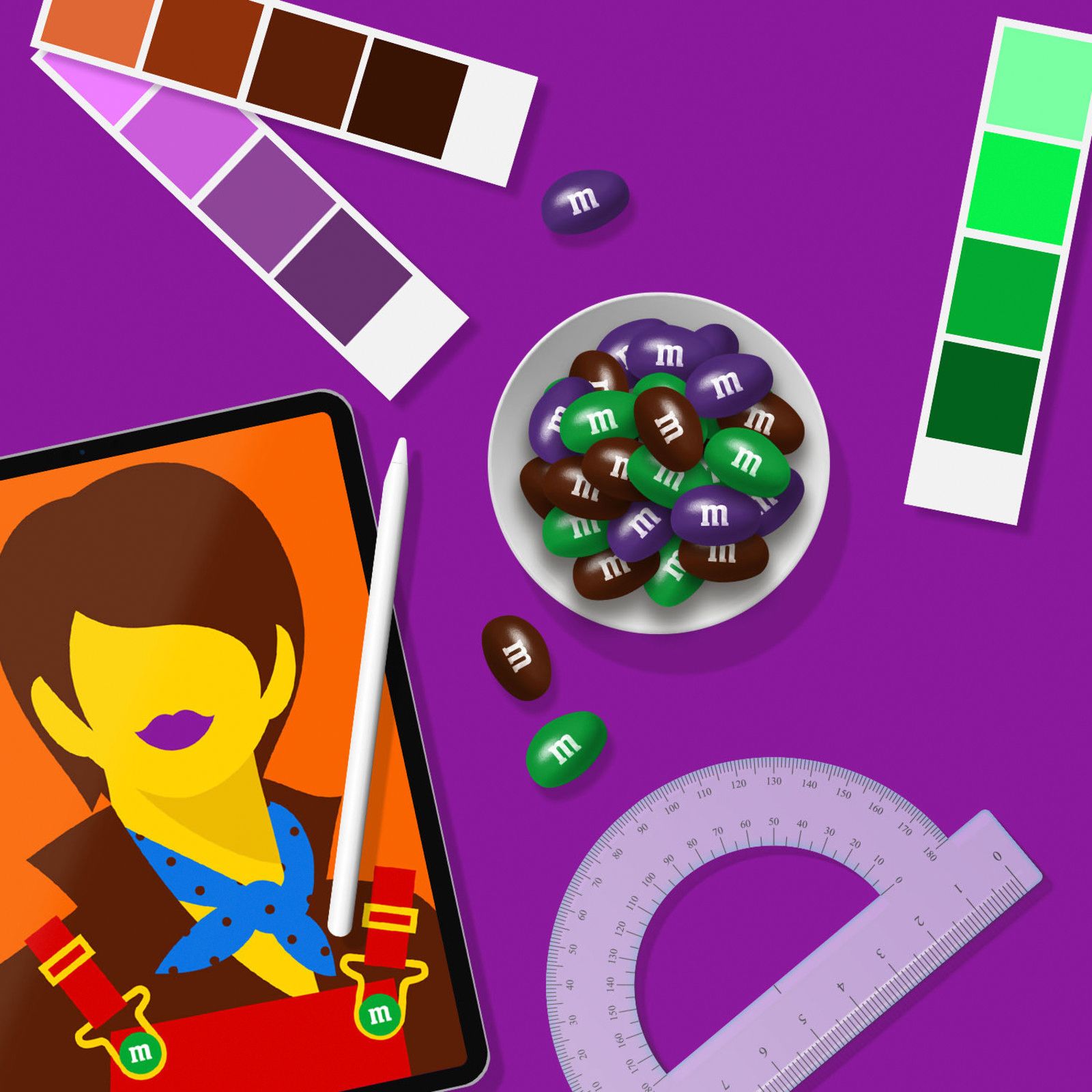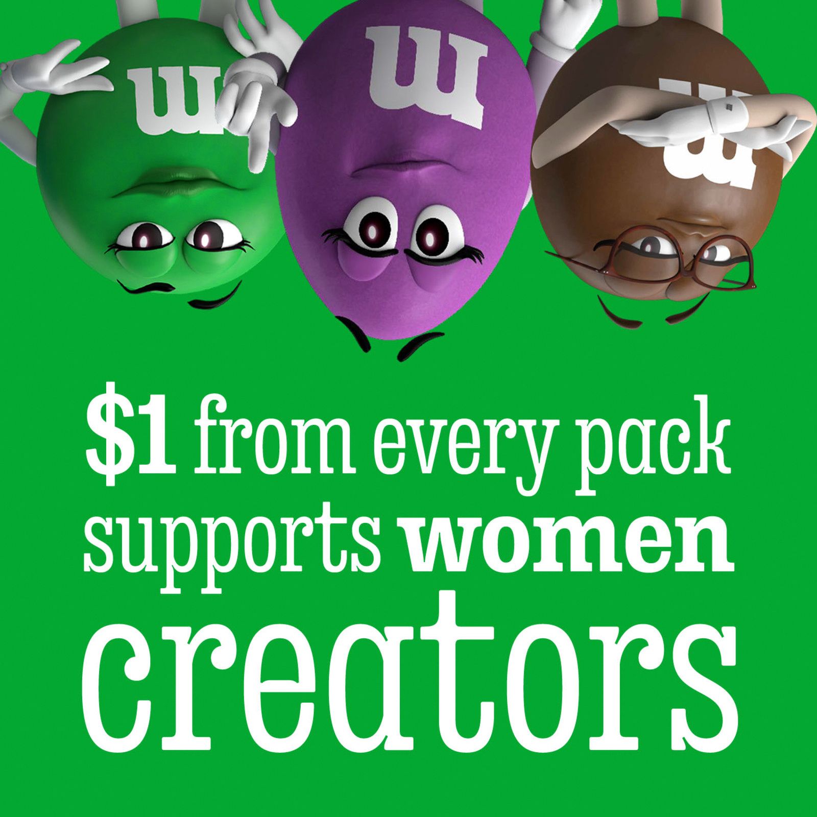 You are seeing right! M&M’s three leading ladies are upside down. Why? M&M's is flipping their packs of M&M's chocolates in support of women who are ‘Flipping the Status Quo” and reshaping success. This limited edition bulk candy jar is full of milk chocolate and roasted peanuts covered in brown, green, and purple candy shells in honor of M&M’S female characters.