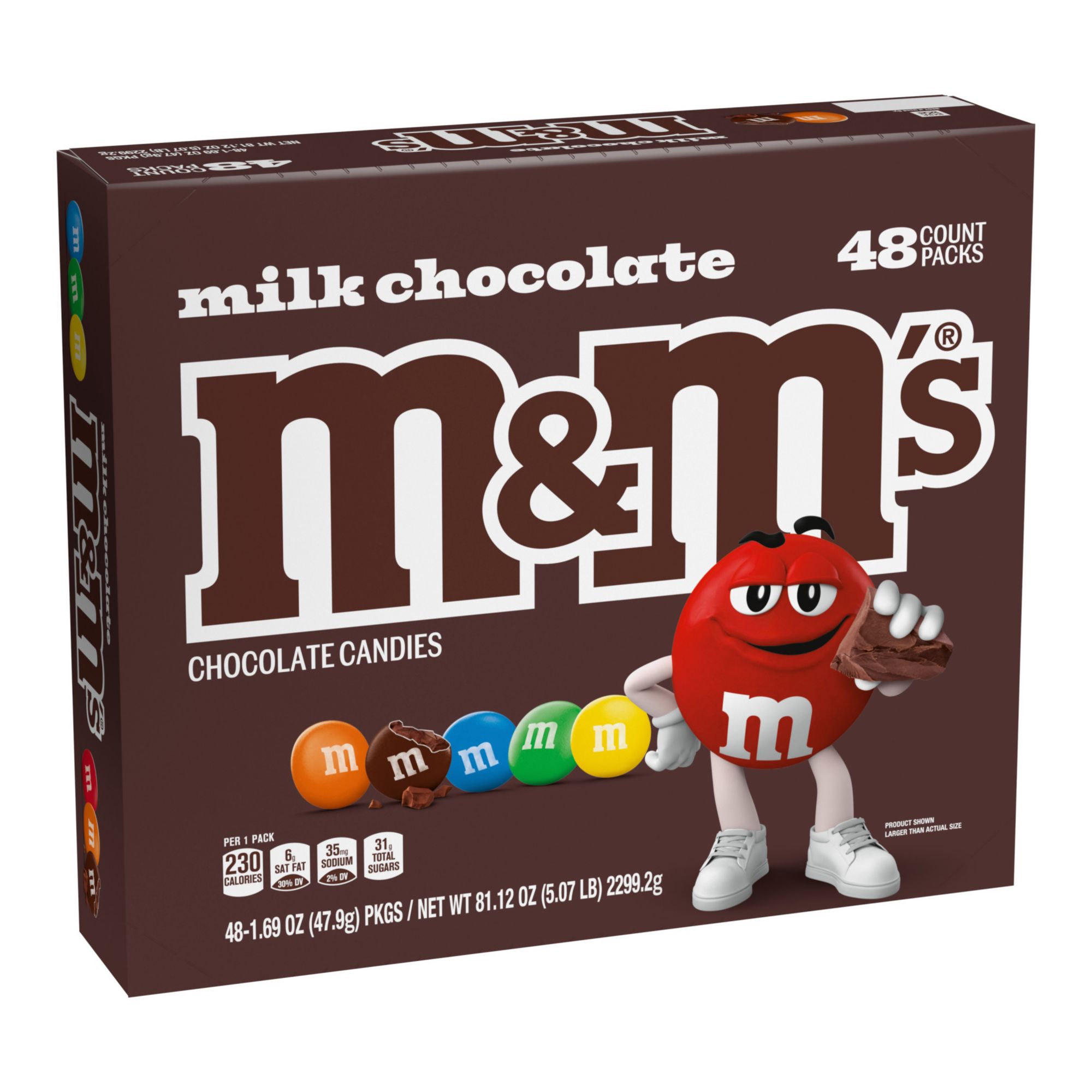 Contains one (1) 48-count box of 1.69-ounce individually wrapped full size M&M'S Milk Chocolate Candy packs