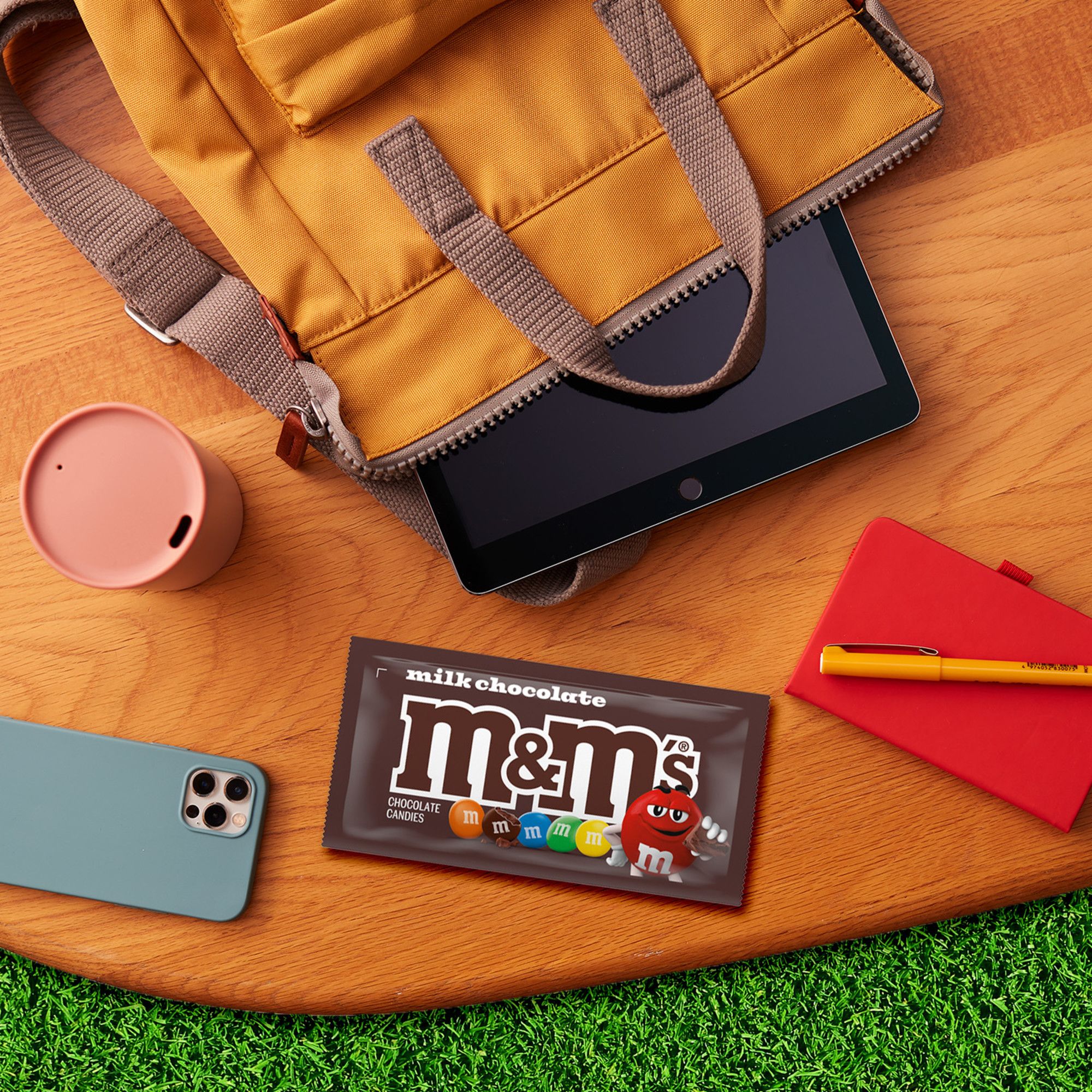 Add delicious, colorful fun to everyday celebrations with this 48-count box of Full Size M&M'S Milk Chocolate Candy packs. These bulk candy packs full of milk chocolate candy are a must for your pantry list. Enjoy delicious milk chocolate surrounded by a colorful candy shell. Individually wrapped Full Size packs are ideal for keeping the pantry stocked for movie night with the family and small celebrations with friends. These colorful chocolate candies make great to-go treats, pack them in lunches or take them along on family road trips to enjoy peanut milk chocolate candy on the road. Mix the perfect trail mix with M&M'S candy for the perfect chocolate treat to take along on hikes and outdoor activities. These M&M'S bulk candy packs are a tasty way to share your love of milk chocolate candy with friends and family. These Full Size packs are great for filling candy bag party favors or candy gift baskets. Be the best house on the block this Halloween when you hand out Full Size Milk Chocolate M&M'S candy to Trick-or-Treaters. With 48 individually wrapped Full Size packs in every box, this bulk candy carton is perfect for stocking vending machines, concession stands, and the office pantry. Celebrate everyday moments with the delicious, colorful fun of M&M'S Milk Chocolate Candy.