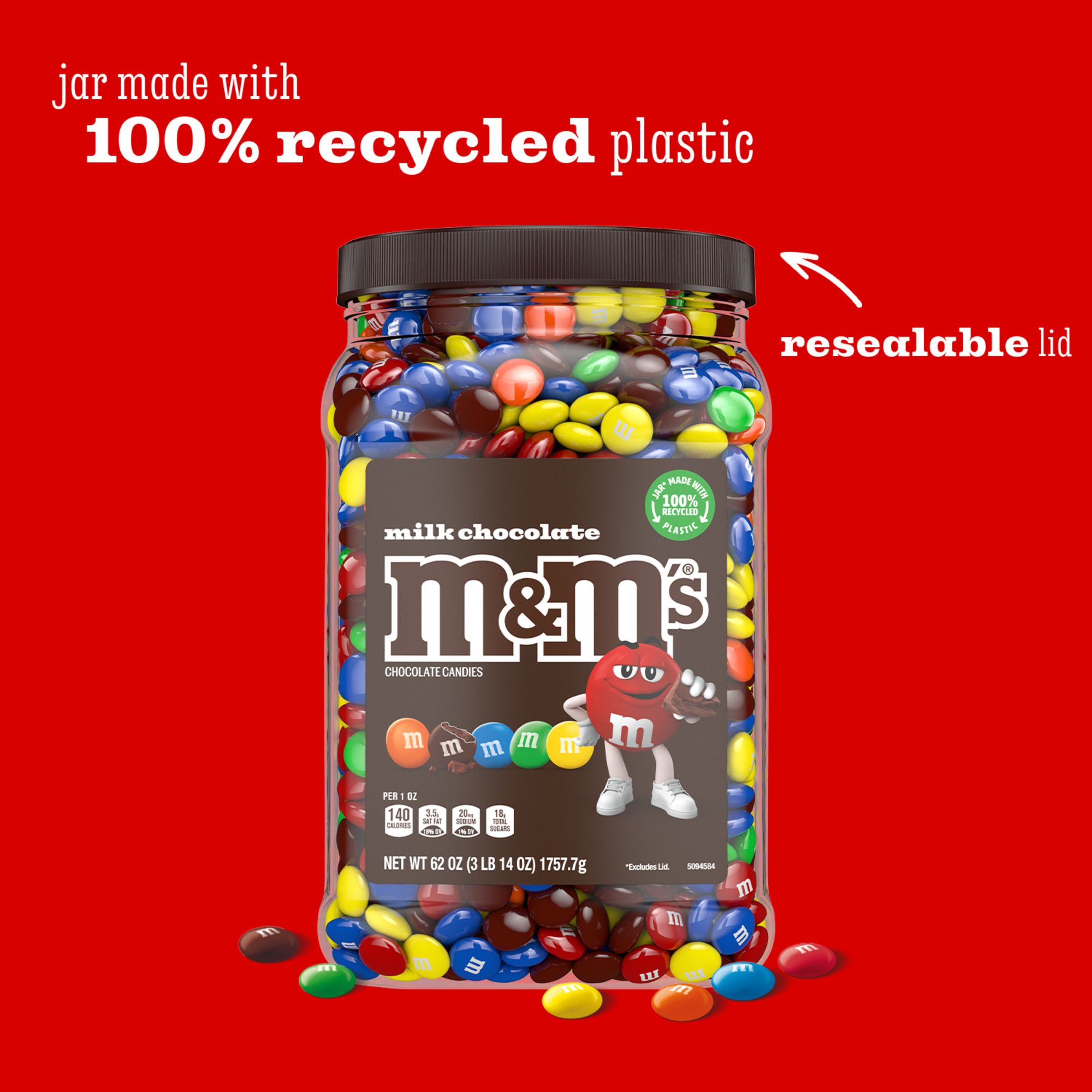 Contains one (1) 62-ounce resealable bulk candy jar of M&M'S Milk Chocolate Candy