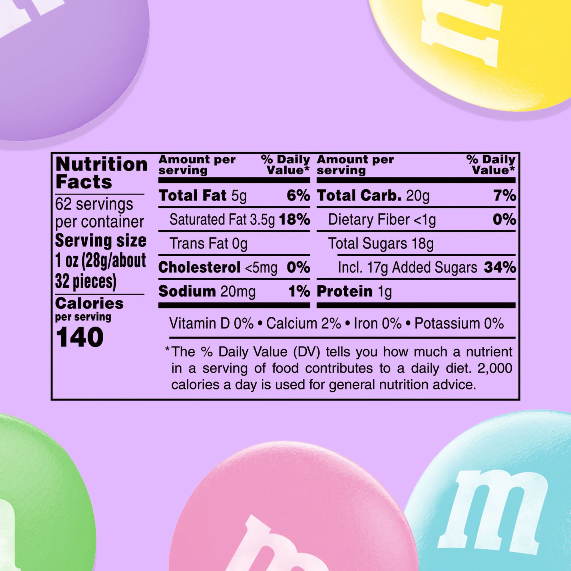 Contains one 62 ounce jar of M&M's Milk Chocolate Easter Candy