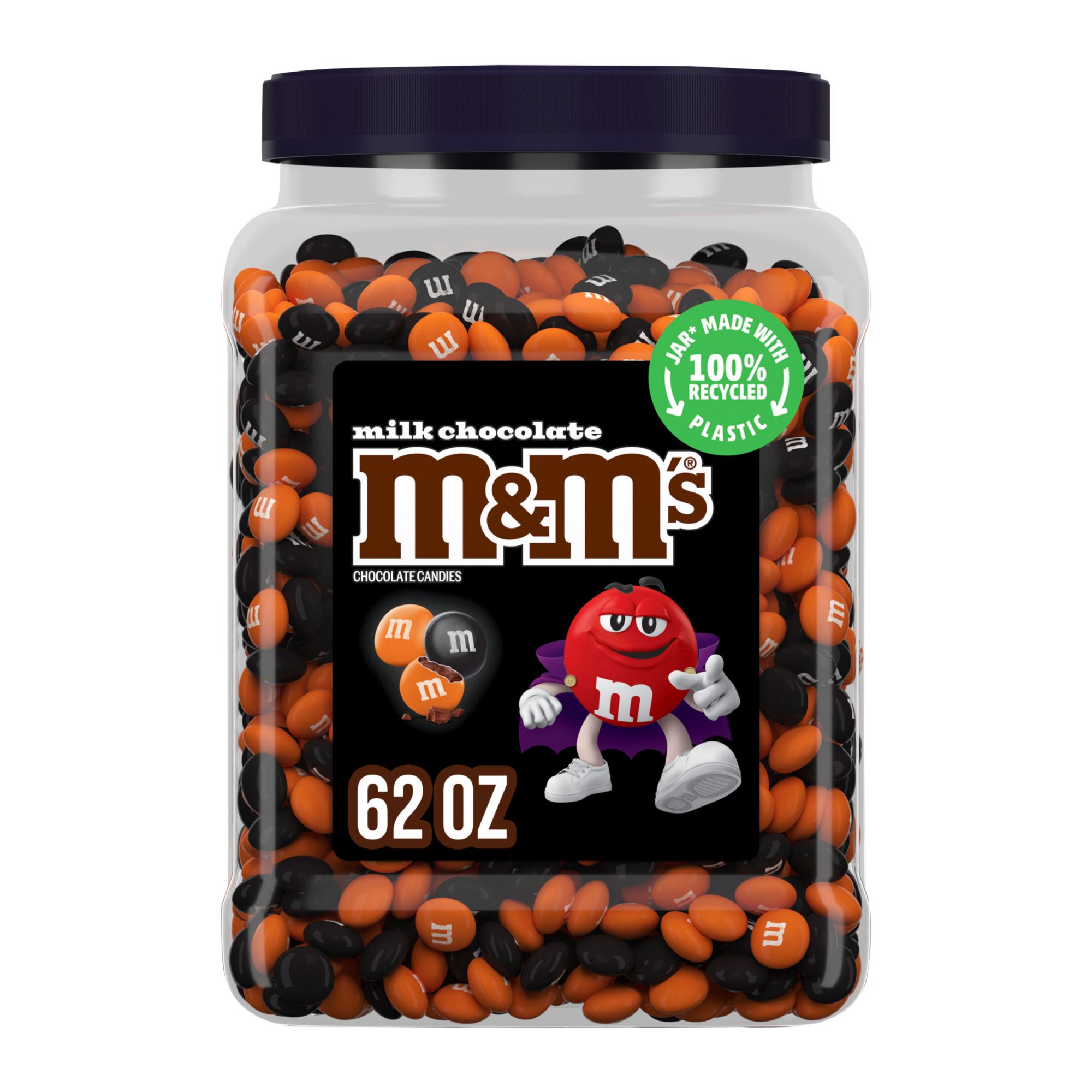 Contains one (1) 62 ounces of M&M'S Milk Chocolate Bulk Halloween Candy Resealable Jar