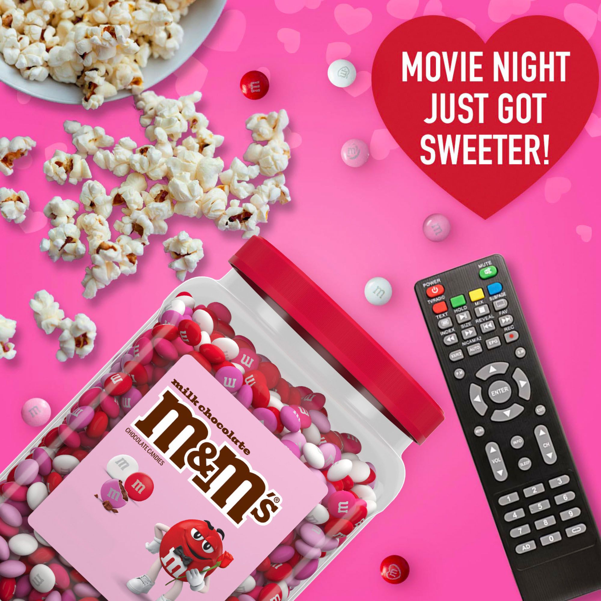 Contains one (1) 62-ounce bulk resealable jar filled with M&M'S Milk Chocolate Valentines Day Candy