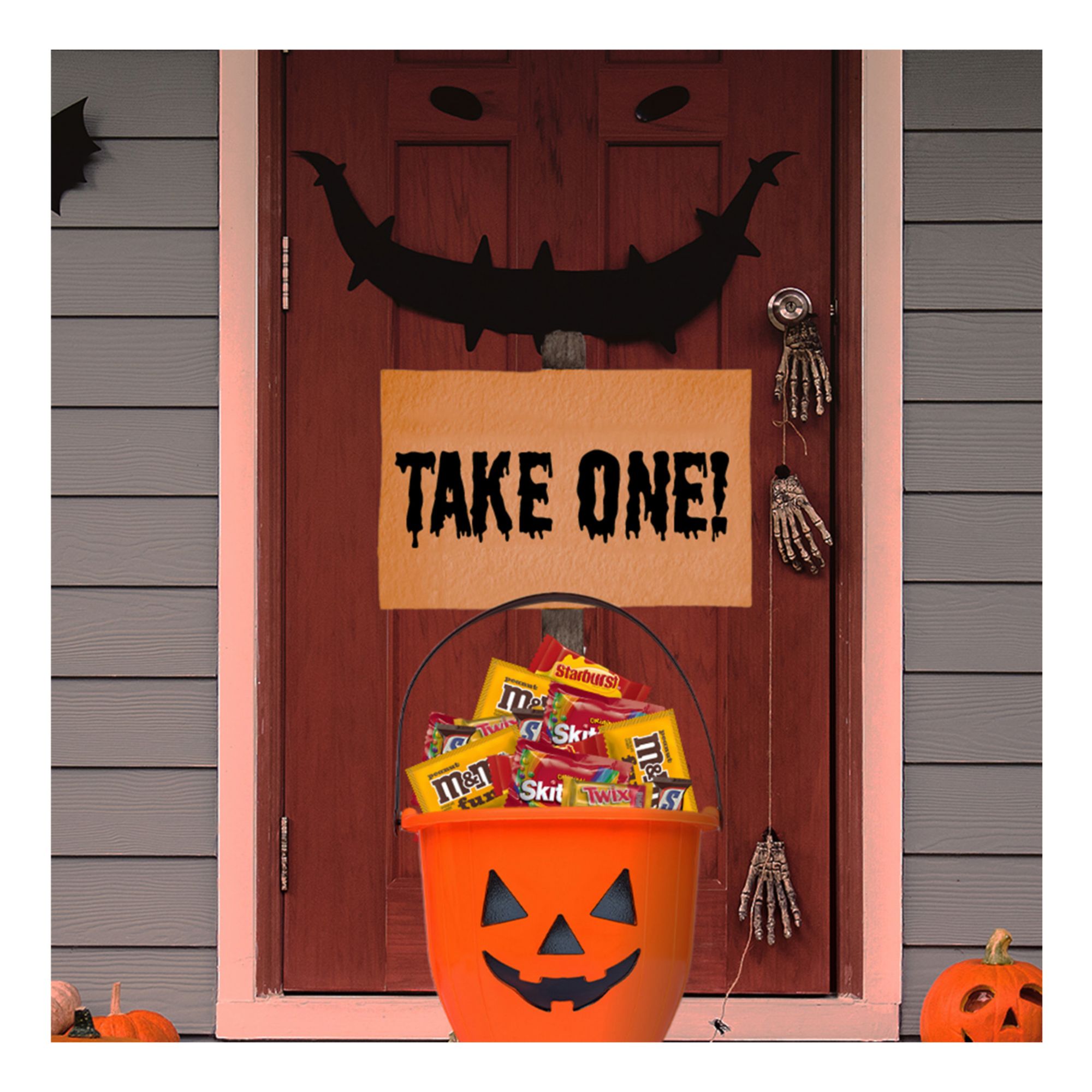 Knock, Knock! Who’s there? Scary costumes and open trick or treat bags! Give them what they came for on Halloween night with this four-pound chocolate and chewy variety bag. This Halloween bulk candy bag includes 185 individually wrapped Snickers Chocolate Bars, M&M'S Peanut Chocolate Candy, Twix Chocolate Bars, Skittles Original Chewy Candy, and Starburst Fruit Chews. As the trick-or-treaters come and go, kick up the spooky factor at the Halloween party going on inside. Fill a candy dish with eerie fun size Halloween candy or leave guests shrieking at the haunted charcuterie board centerpiece you made from assorted chocolate candy and fruity candy. Halloween party not on your to-do list this year? Pop the popcorn, pick your favorite fun size chocolates and fruit candy, and start binging scary Halloween movies. Keeping everyone happy and enjoying Halloween is easy with this bulk bag.