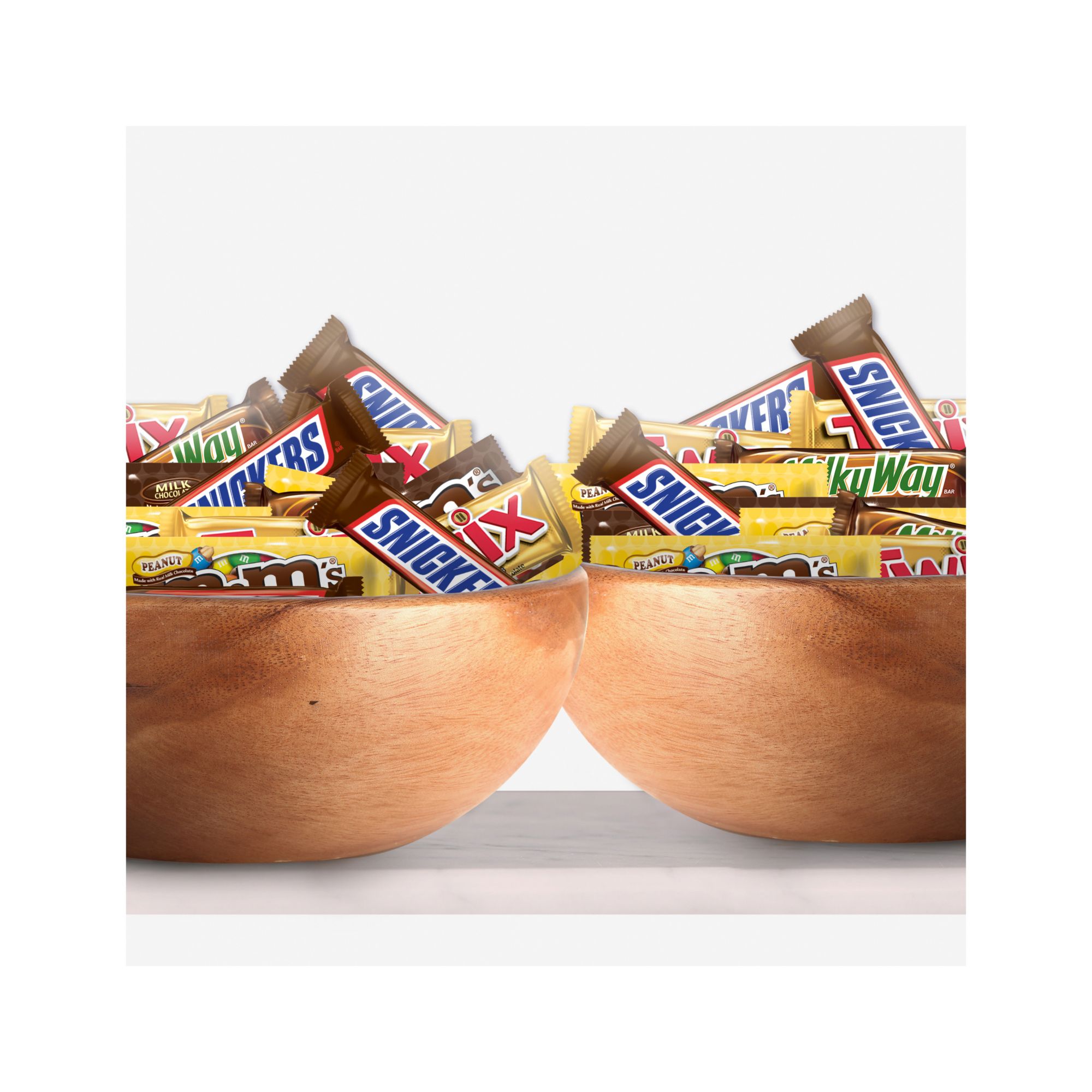 Contains one 53.66-ounce, 30-count box of full-size, individually wrapped (8) Snickers, (7) Twix, (6) M&M's Peanut Chocolate Candies, (5) M&M's Milk Chocolate Candies and (4) Milky Way Chocolate Candy Bars