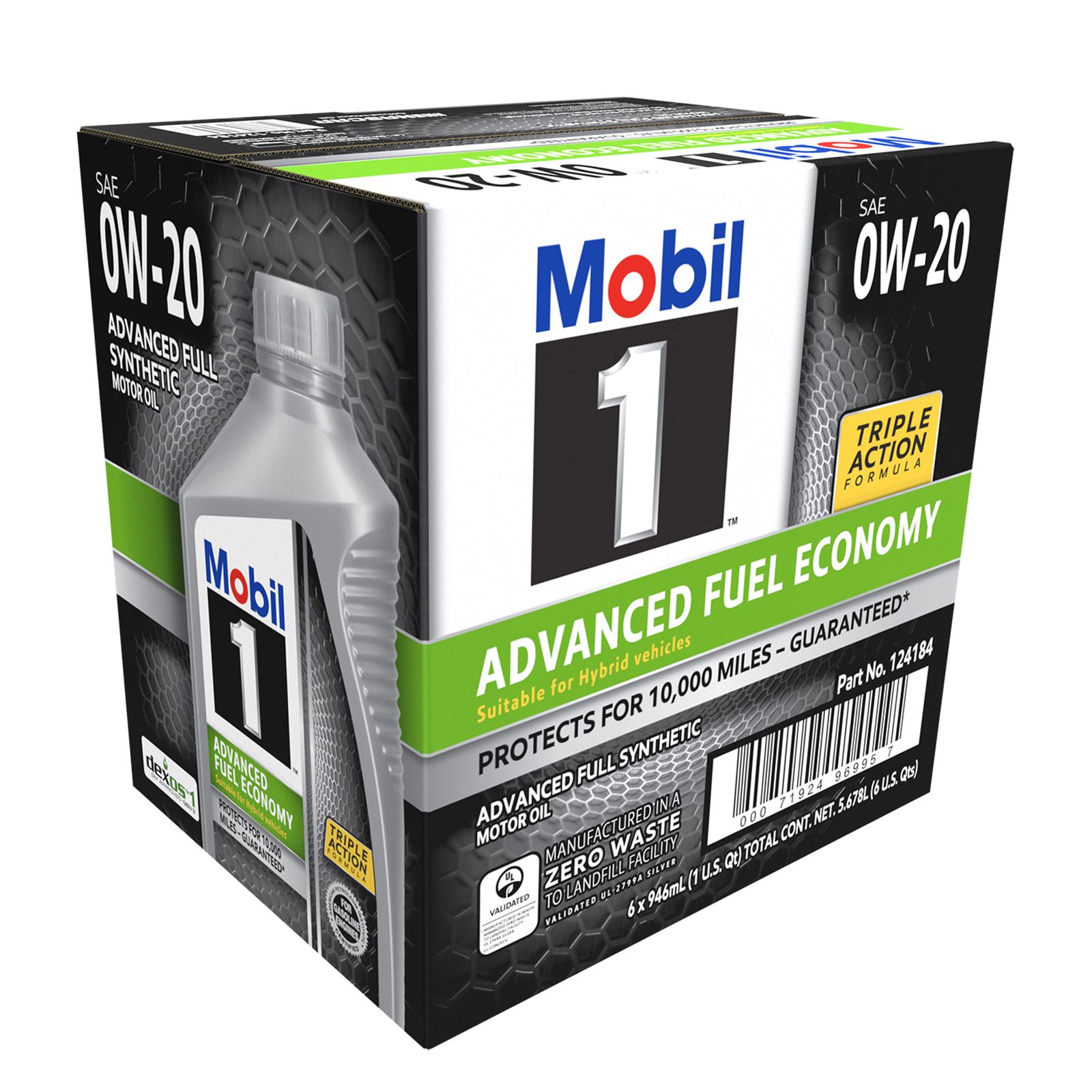 Mobil 1 Advanced Fuel Economy Full Synthetic Motor Oil 0W-20, 6 pk./1 qt.