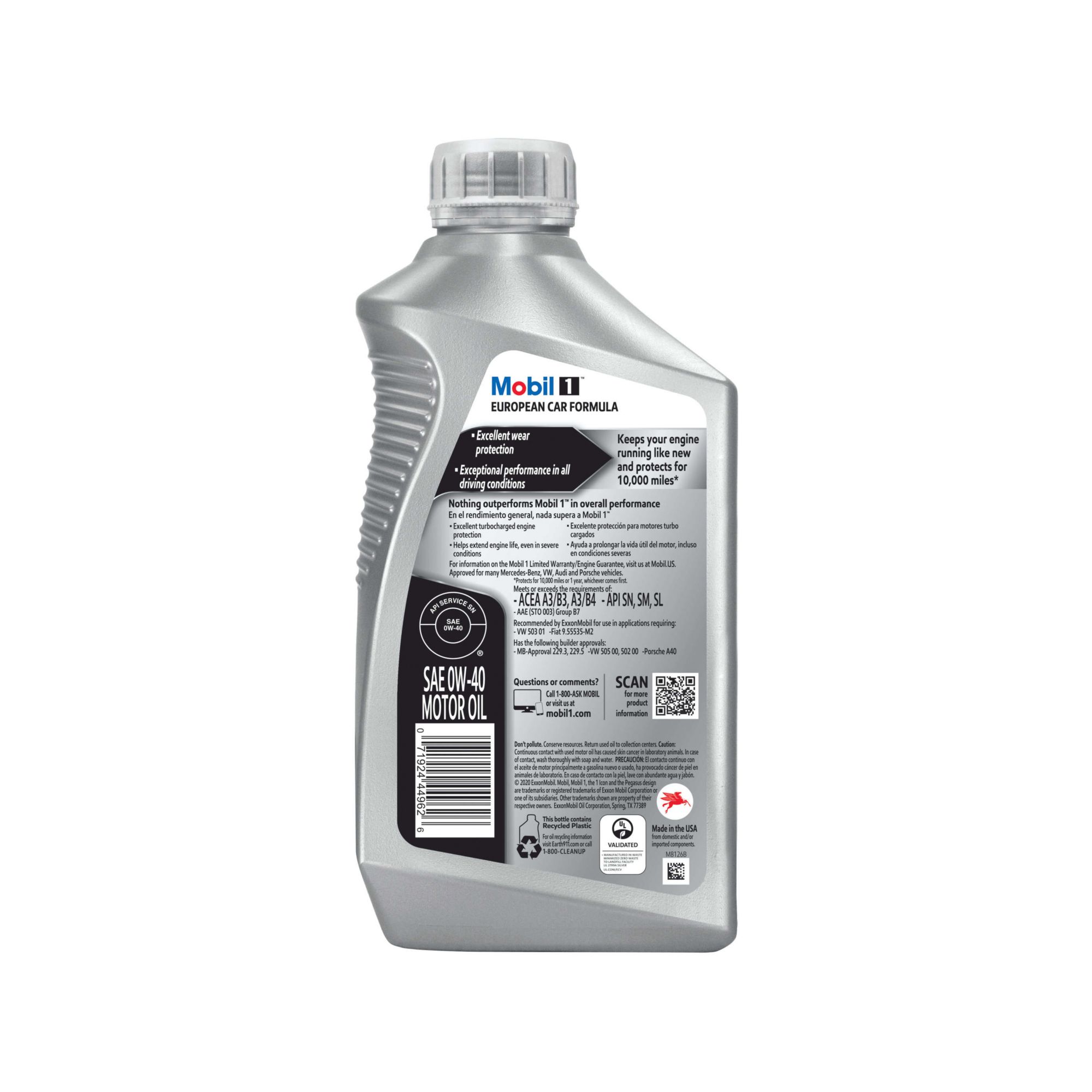 Mobil 1 FS European Car Formula Full Synthetic Motor Oil 0W-40, 6 pk./1 qt.