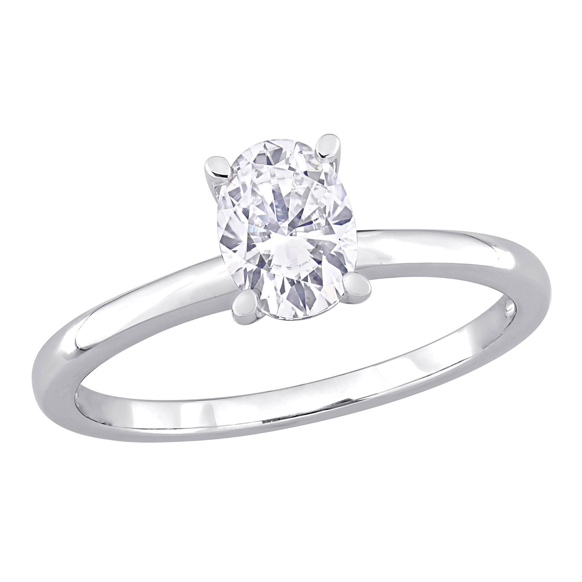 Moissanite Oval Solitaire Engagement Ring in Sterling Silver