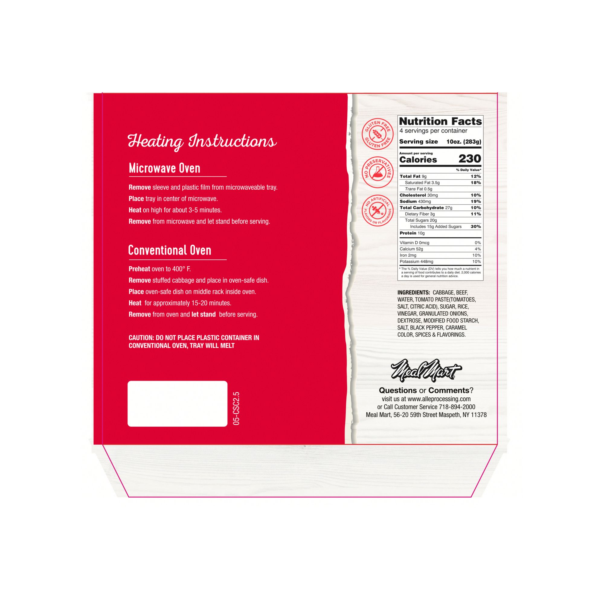 Glatt Kosher Heat and eat Gluten free Hand rolled Includes 40-oz. beef stuffed cabbage
