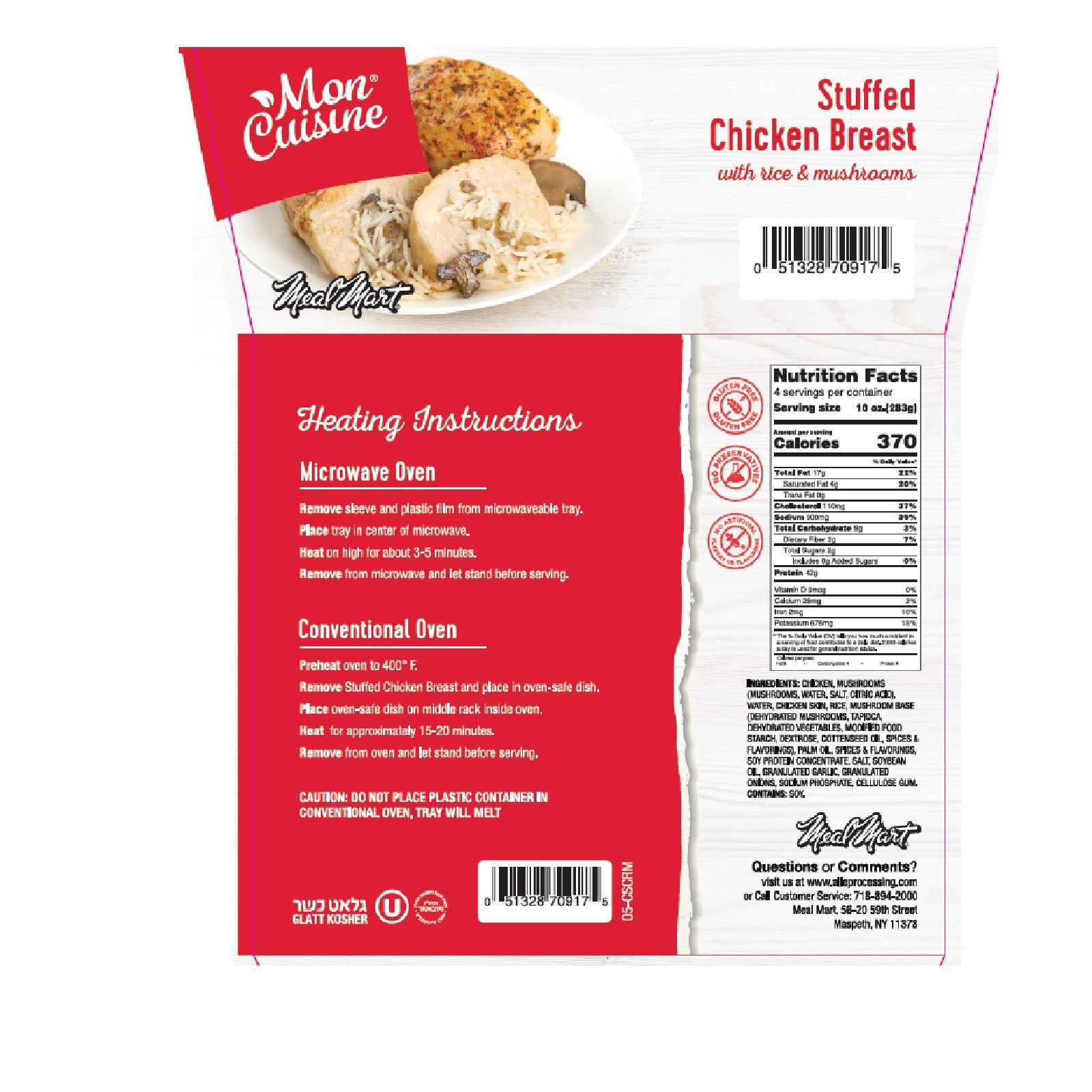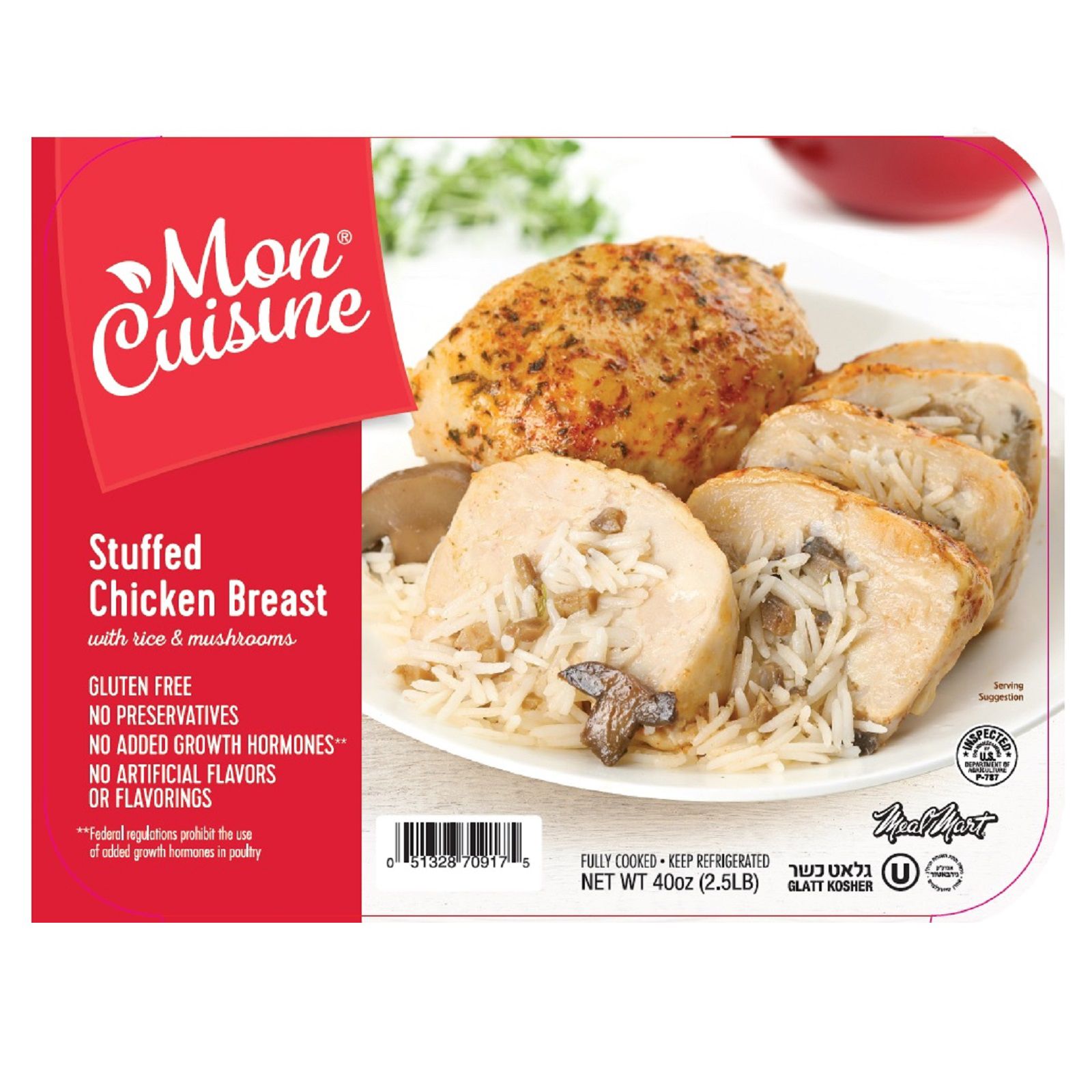 Mon Cuisine NY Kosher stuffed chicken breast with rice and mushrooms will bring health and happiness to your dining table. With no added growth hormones, preservative or artificial flavors this meal is perfect to share its deliciousness with friends and family.