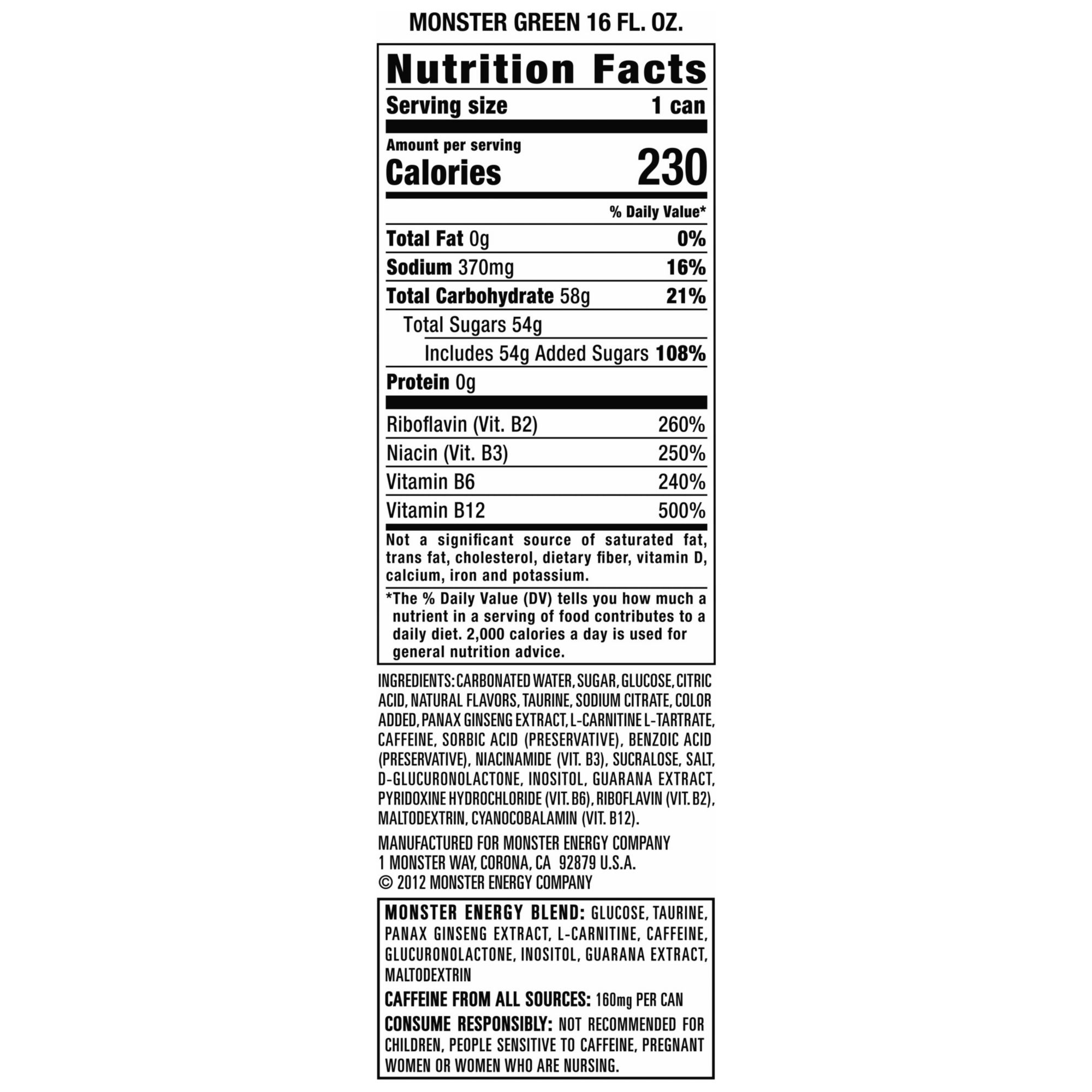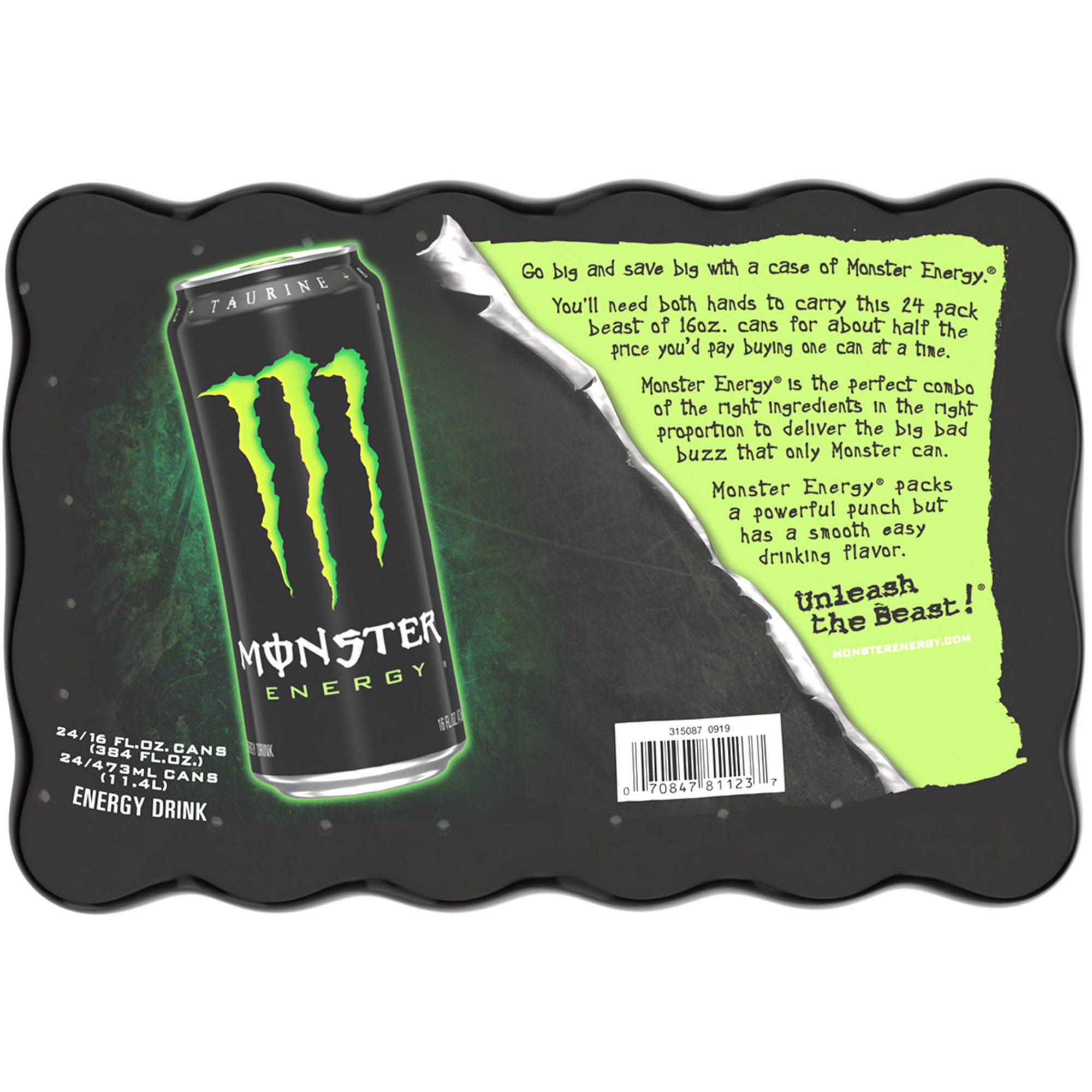 Unleash the beast. Dive into the wild world of the most ferocious Energy Drink on the planet, Monster Energy. Whether you're an athlete, musician, anarchist, student, road warrior, metalhead, geek, hipster, or biker, this Energy Drink fuels your passion and lifestyle. Caffeine content: Caffeinated. Age range: 18 or older.