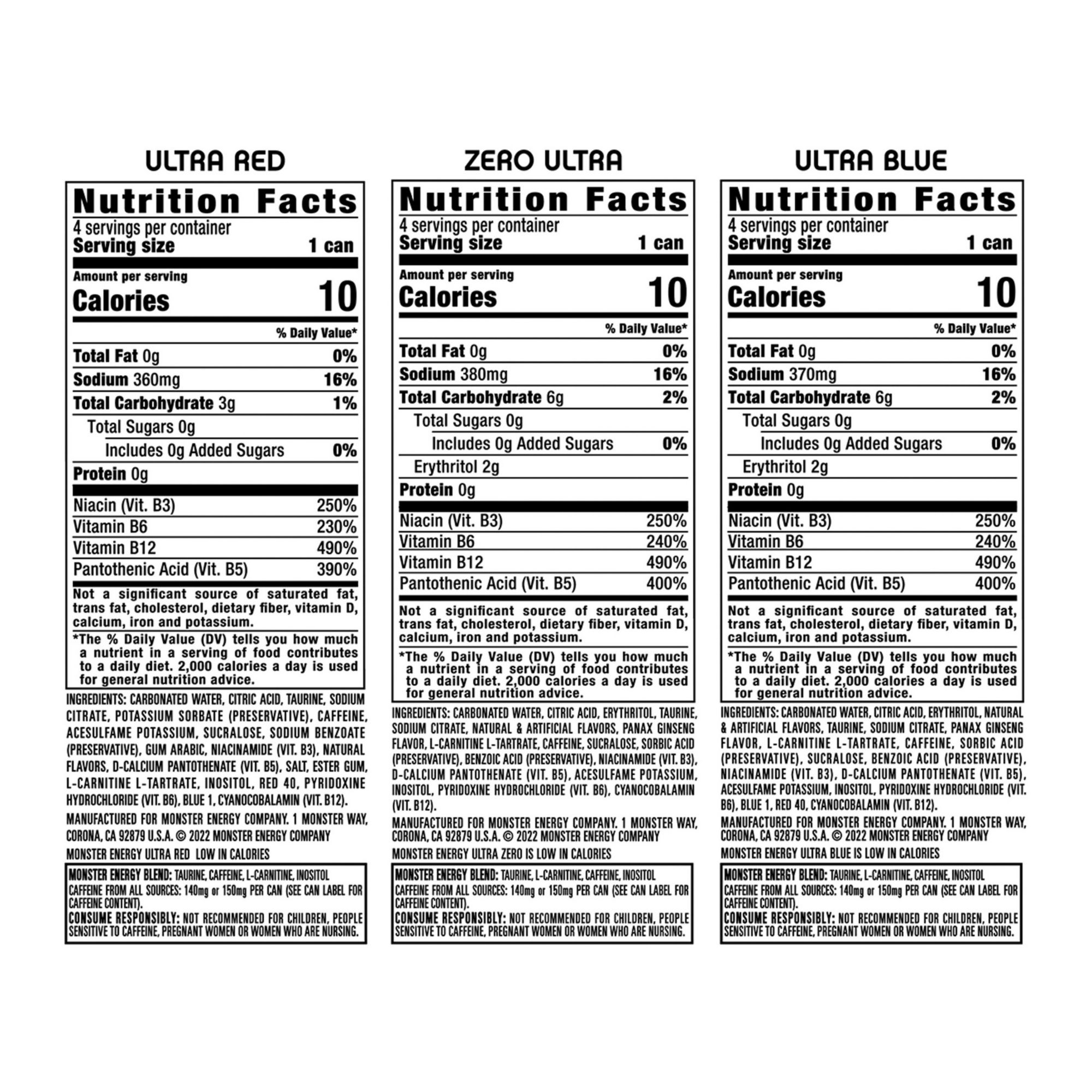 Refreshing taste: Monster Ultra Blue offers a frosty, crisp blue raspberry flavor. Ultra Blue is great for any occasion.