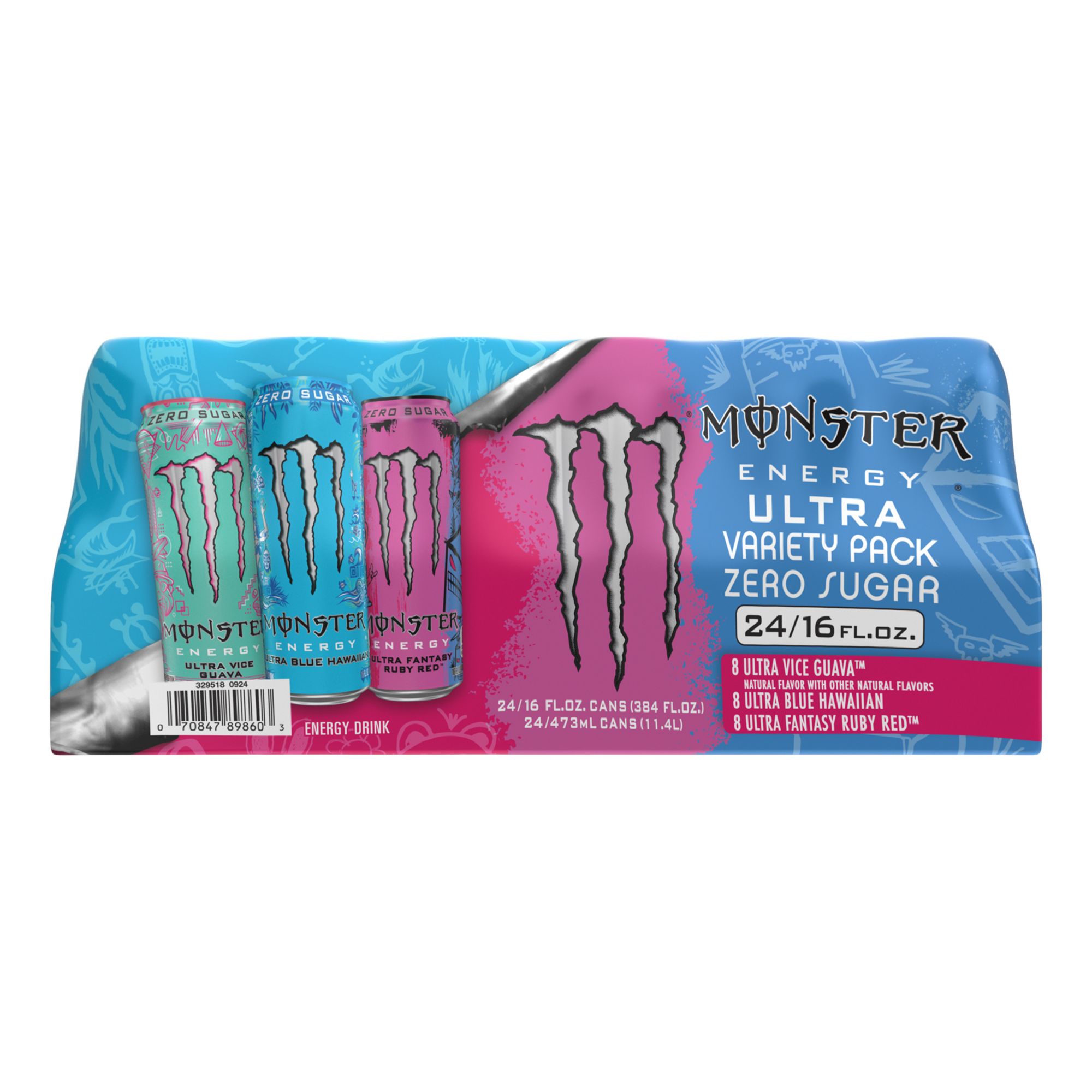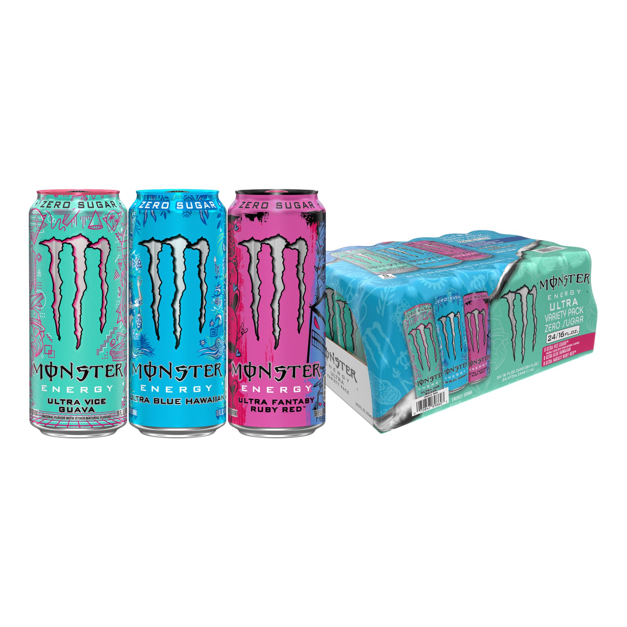 Monster Ultra Variety Vice Guava, Blue Hawaiian, Fantasy Ruby Red, Cans, 24 pk./16 oz.
