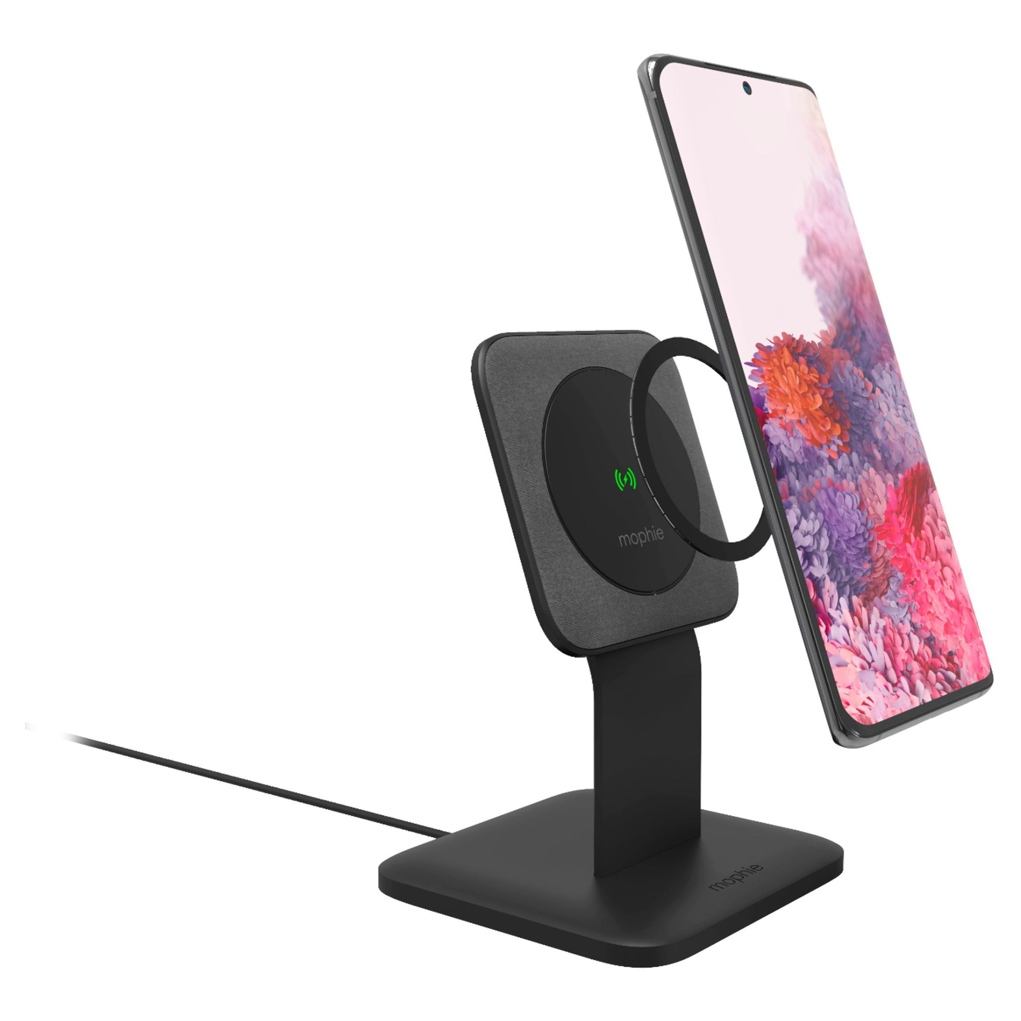 Elevate your wireless charging while keeping your smartphone at the perfect, convenient angle with the snap+ wireless stand. Strong magnets hold your smartphone in landscape or portrait mode, all while delivering a steady charge. The magnetic array on the snap+ wireless stand is compatible with virtually any Qi-enabled smartphone or with MagSafe for iPhone 12 models and newer. The stylish design makes this stand a must-have on any desk or nightstand.