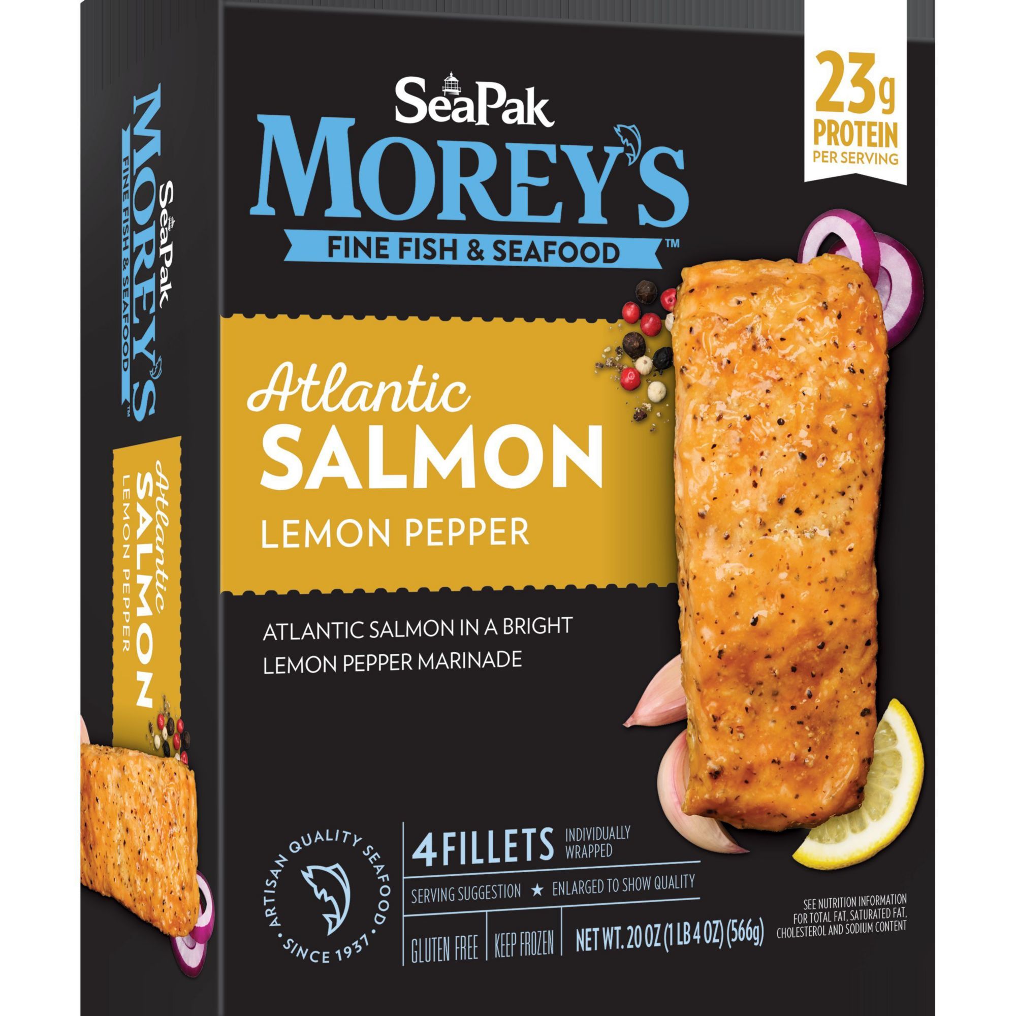 Morey's Atlantic Salmon Lemon Pepper, Individually Wrapped, Frozen Fillets, 4 ct./5 oz.