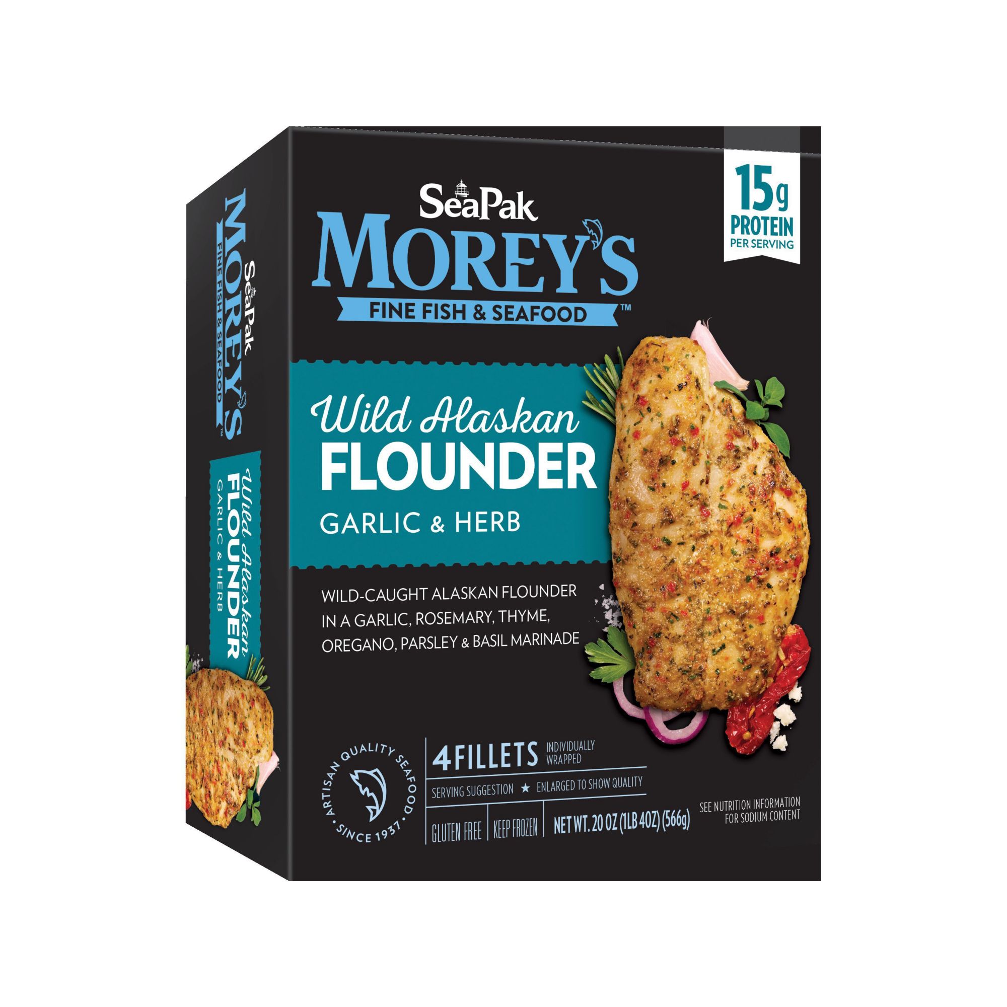Morey's Wild Alaskan Flounder Garlic & Herb, Individually Wrapped, Frozen Fillets, 4 ct./5 oz.