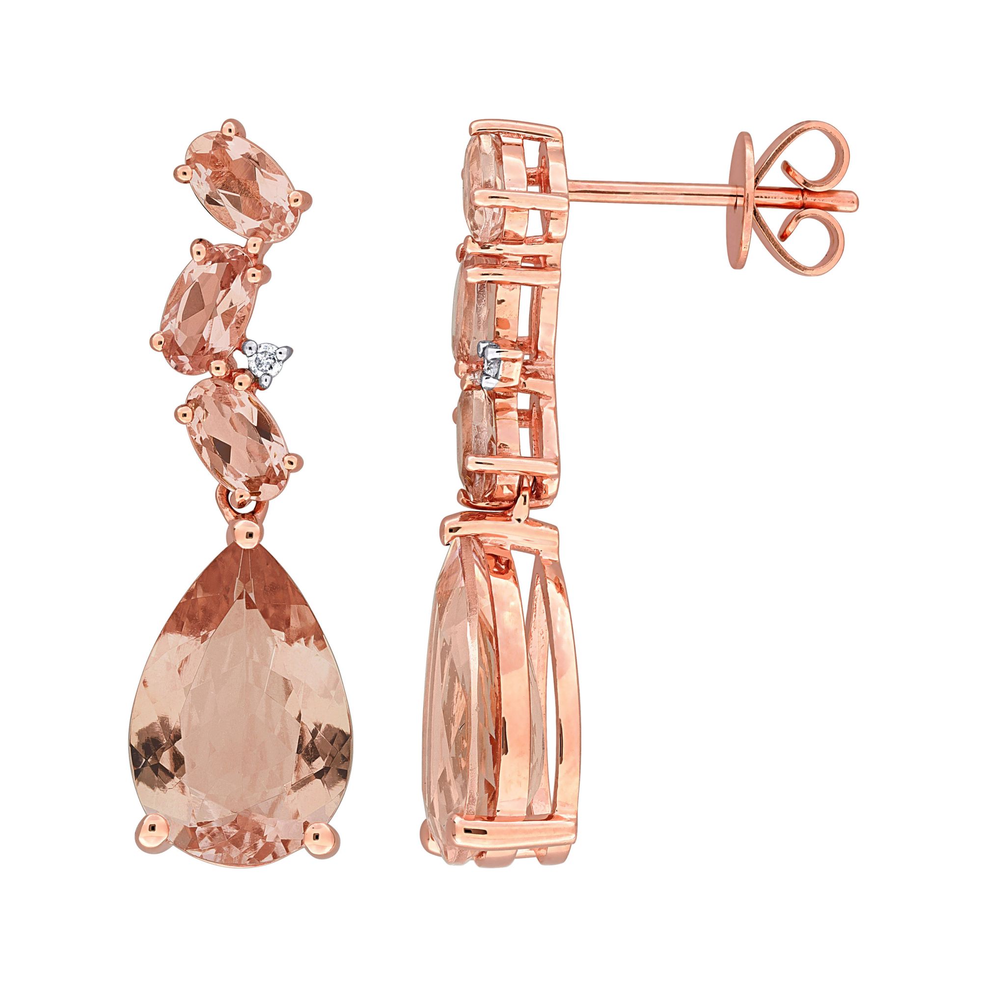Set in 10k Rose Gold 7 ct. t.g.w. Morganite 0.02 ct. t.w. Diamond Diamond Quality: G-H/I2-I3 Includes Morganite and Diamond Accent Teardrop Earrings in 10k Rose Gold