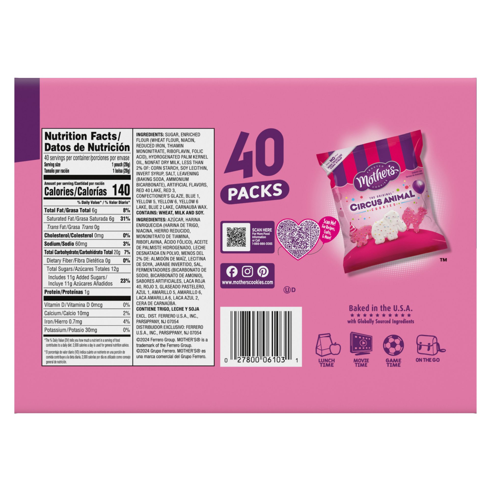 Mother's Circus Animals Cookies, Snack Packs, 40 ct.